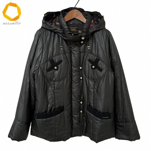 ●商品名(タイトル):#wnc レリアン Leilian ジャケット 13+ 黒 TUTTI di CLASSE スタンドカラー 中綿 フード付 異素材使い 大きいサイズ レディース [975520]