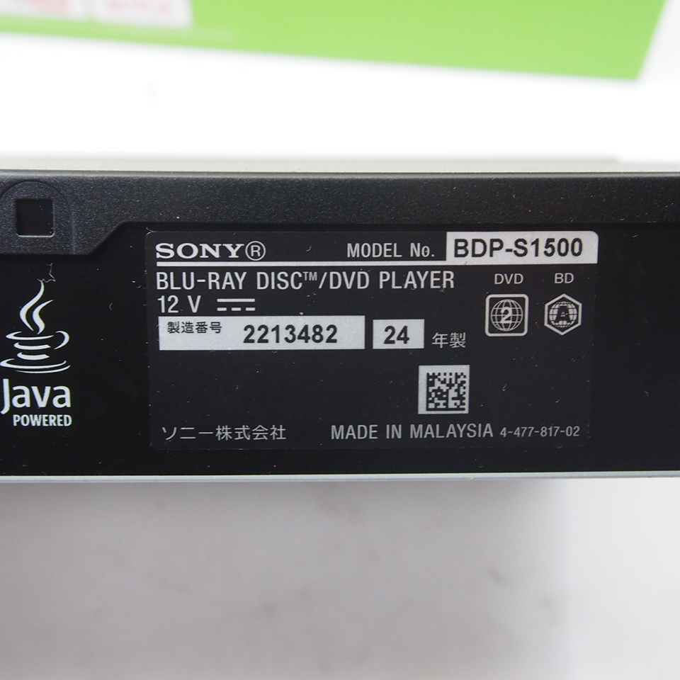 SONY ブルーレイプレーヤー BDP-S1500 2024年製 動作品 ソニー BDプレーヤー