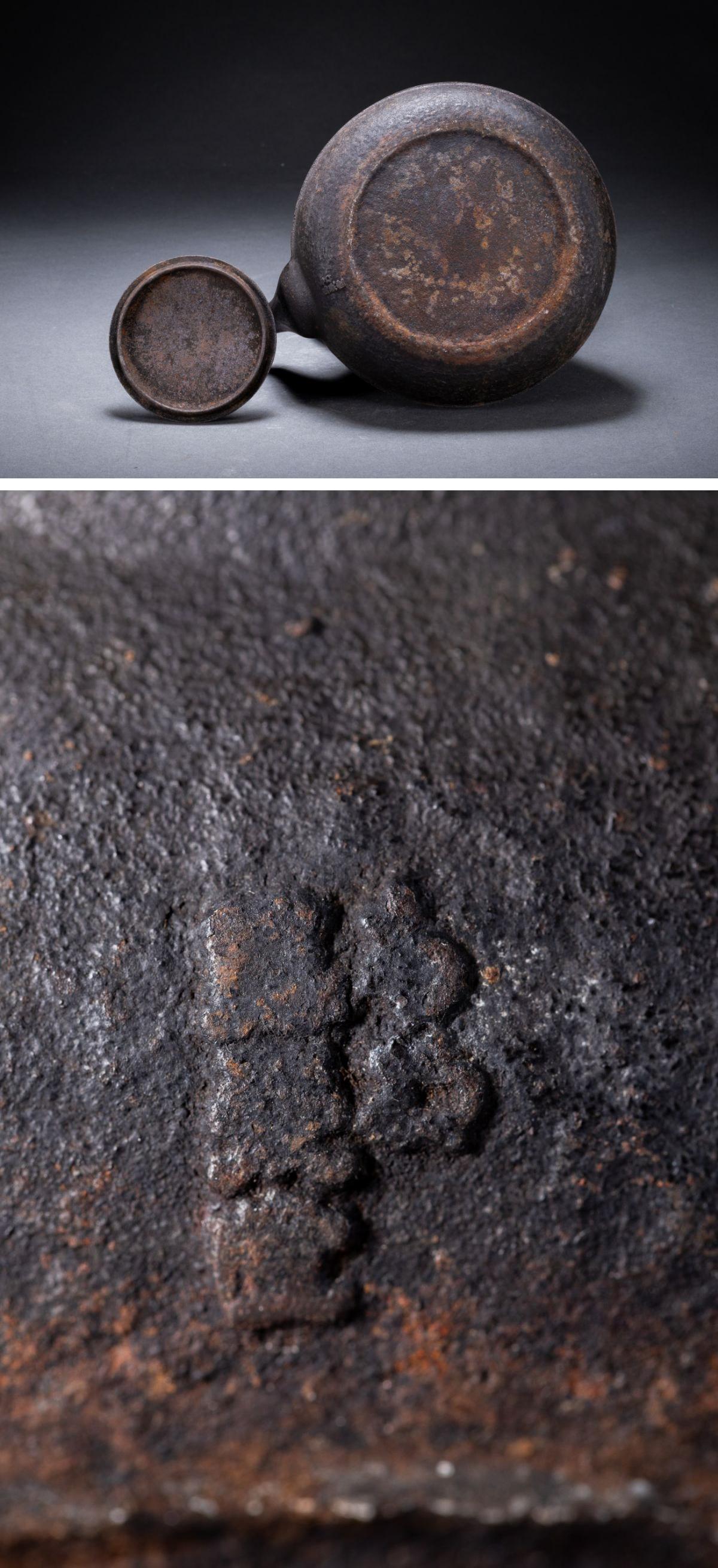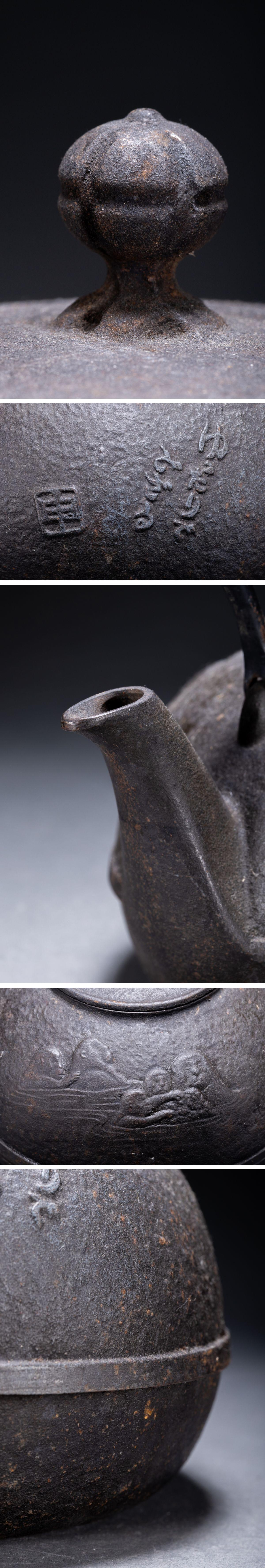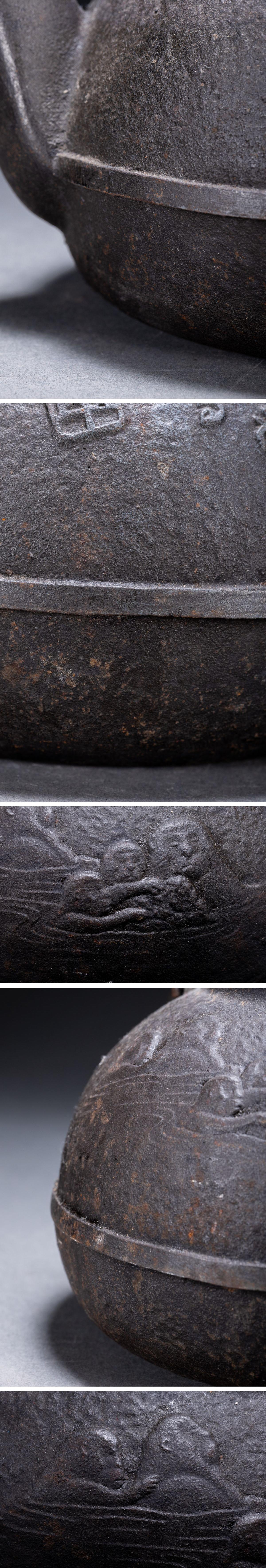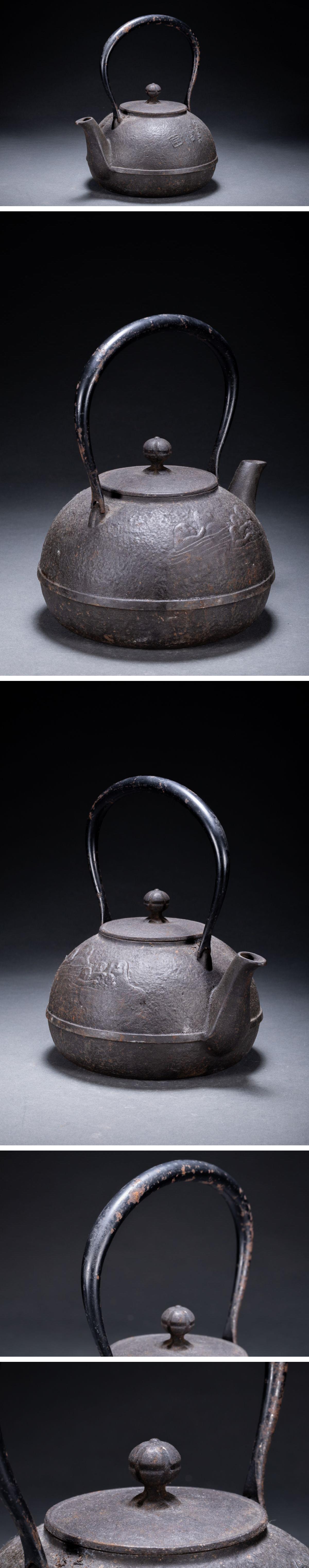【清】某有名収集家買取品 時代物 南部鉄瓶 在銘 猿紋鉄壺 古美術 骨董品7L6-77S05