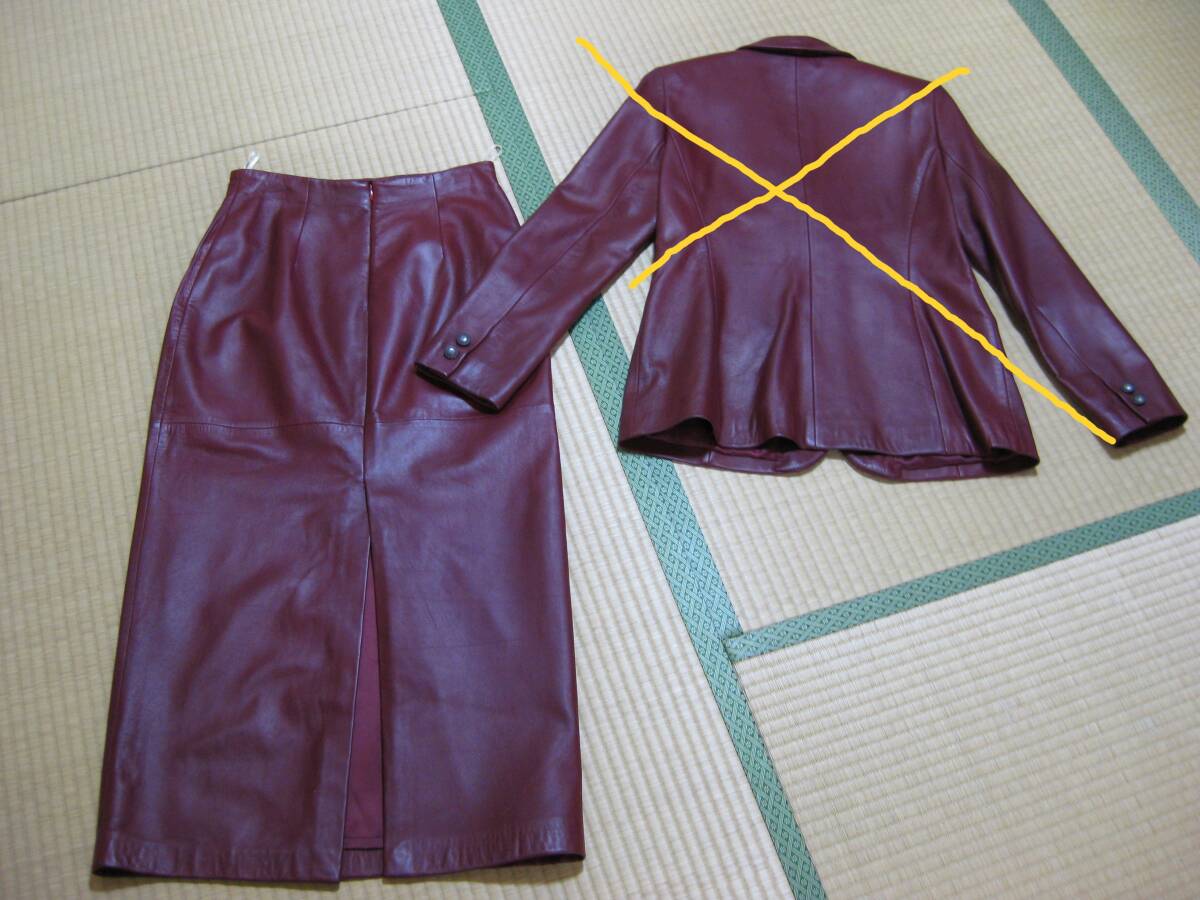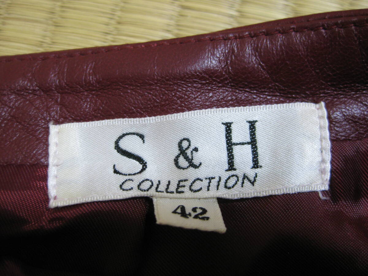 ★S&H ロングタイトスカート 42号 本革 羊革 レザー 無地 光沢 ワインレッド★