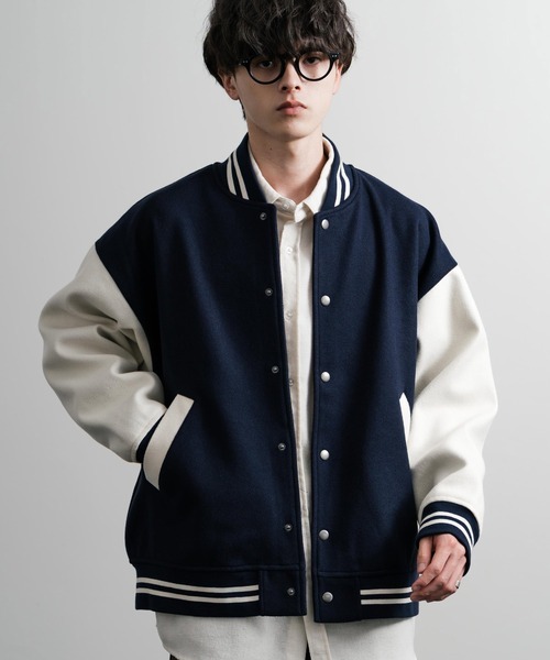 参考商品名:オーバーサイズテックメルトン/PUレザー切替スタジャン