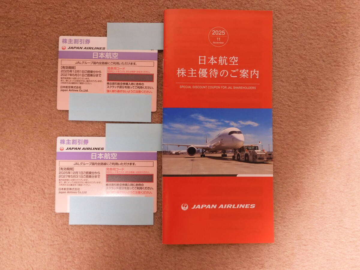 日本航空(JAL)・株主割引券2枚(2027/5/31まで)及び株主優待のご案内(2025/11冊子)