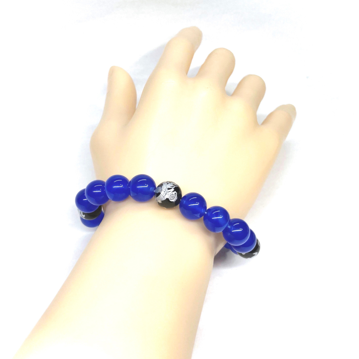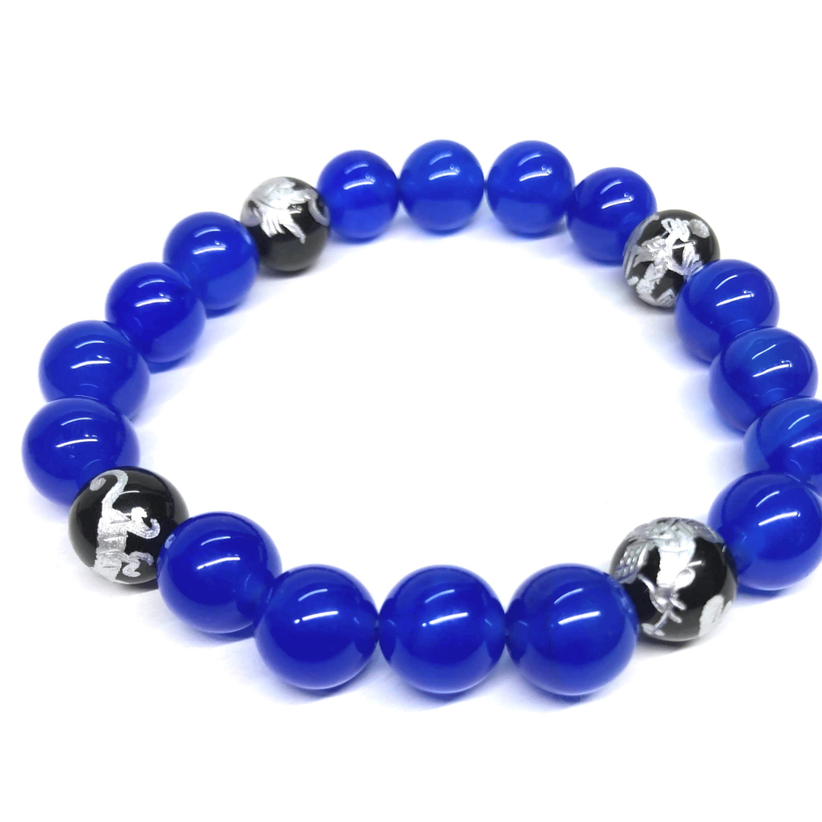 こちらは、四神獣銀彫オニキスと青瑪瑙を組み合わせたパワーストーンブレスレットです。四神獣は、中国の伝説で4つの方向(東西南北)を守護する神聖な神。四神獣、厄災から身を守り、多くの運気を呼び込むと言われております。石大きさは程よくインパクトのある10mm玉で内周 約17cmです。 数に限りがございますので気になる方はお早めにどうぞ。