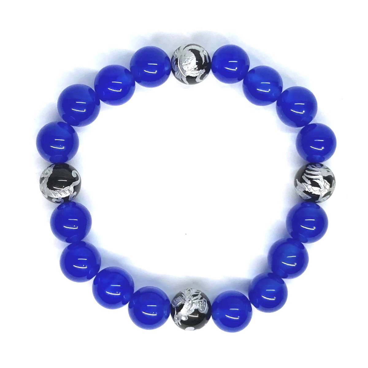 10mm 四神獣銀彫オニキス×青瑪瑙 パワーストーン ブレスレット天然石 運気上昇 開運 金運 恋愛運 青龍 白虎 玄武 朱雀 シンプル ☆