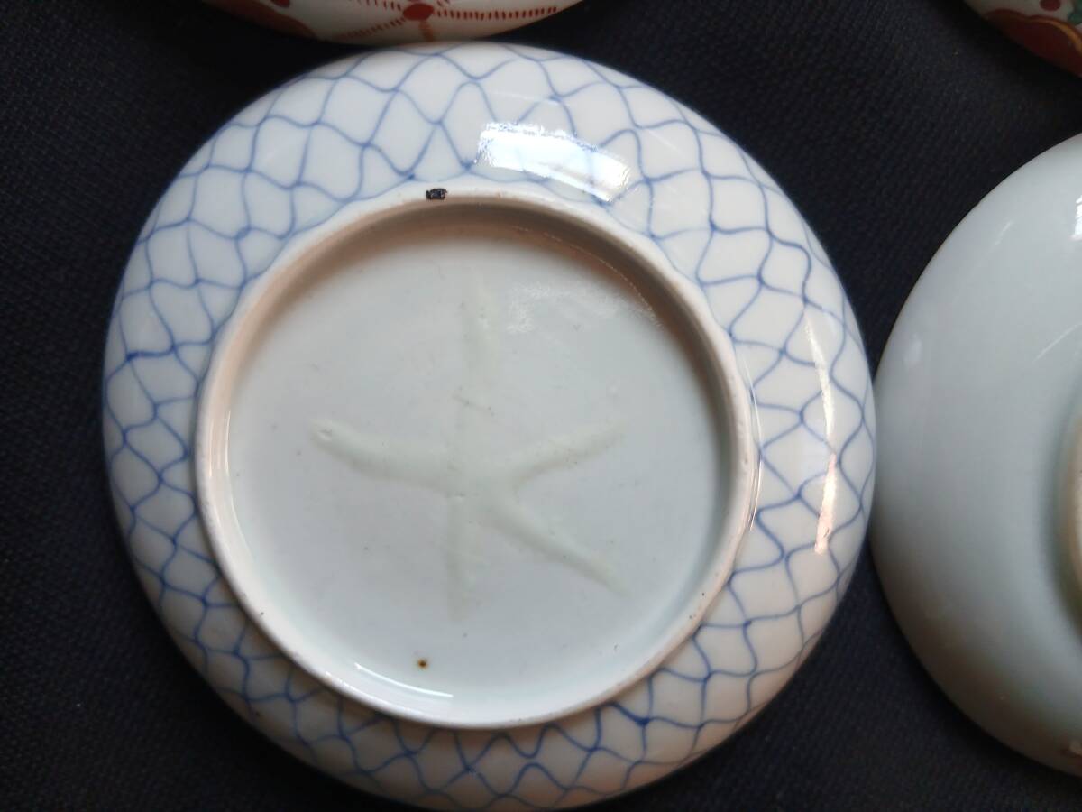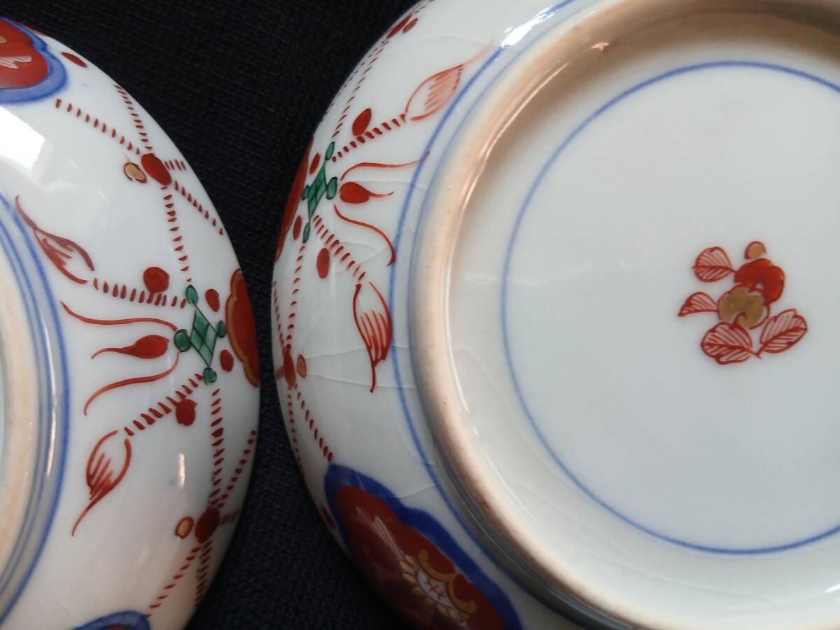 金襴手草花文小皿3客 網目文小皿1客 九谷赤絵小皿1客 印判小皿1客 全て傷あり