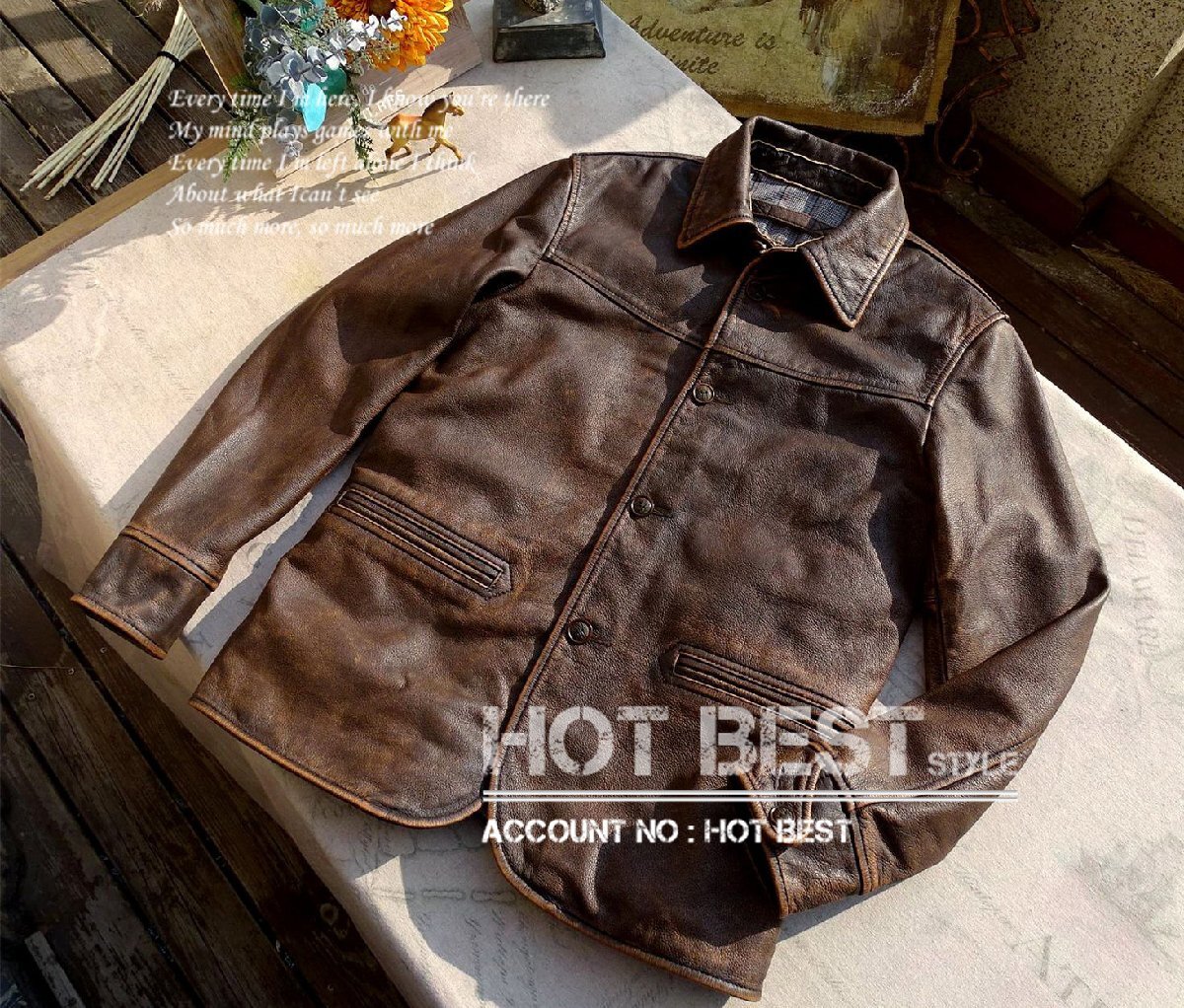 カウハイド 復刻30's カーコート レザージャケット 革ジャン ブレーキマン スイッチヤード 染料仕上げ 牛革 Y2297/S~5XLサイズ指定可