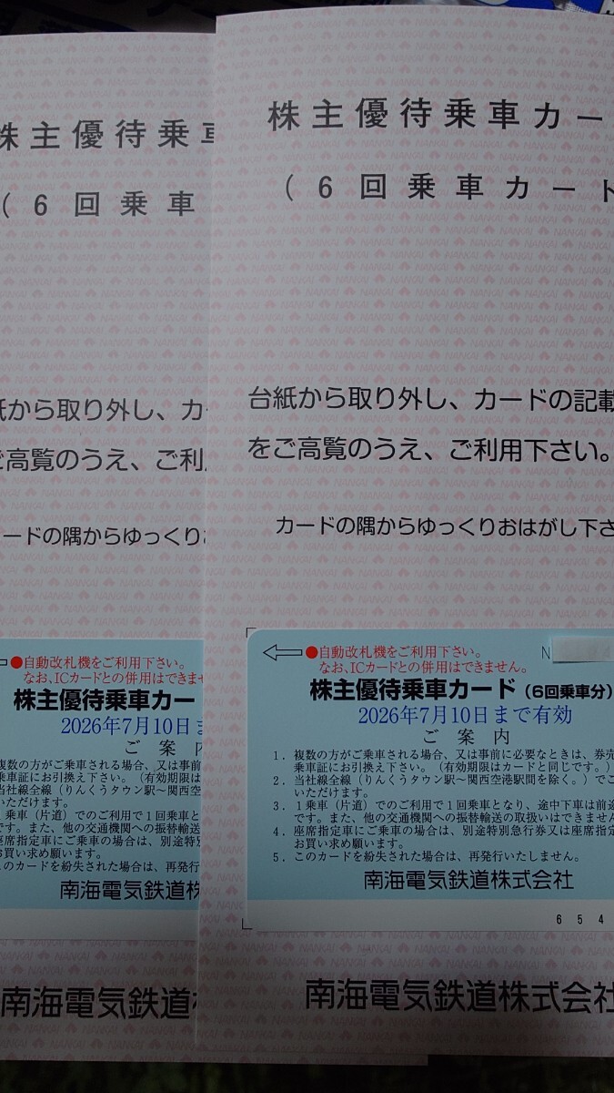 南海 株主優待乗車カード2枚です。