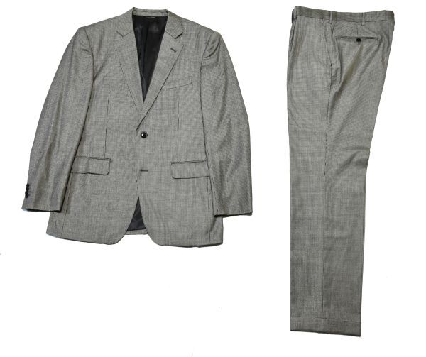 55★定価92,000円★ロロピアーナ★Loro Piana★お洒落な黒&グレーの千鳥格子#周に差をつけ存在感を出す男が選ぶ 高級シングルスーツAB7/L