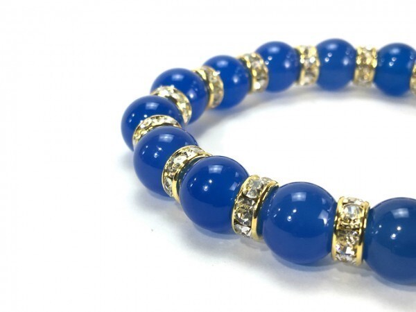 こちらは、10mm玉のブルーメノウを使用したパワーストーンブレスレットです。間にはロンデルを挟み高級感あるブレスレットに仕上げています。石大きさは腕にも馴染みやすいように10mm玉を使用して、サイズは内径約18cmです。(サイズ調節も無料で承っています。サイズ変更の場合は落札後、取引ナビにてご一報くださいませ。) 数に限りがございますので気になる方はお早めにどうぞ。
