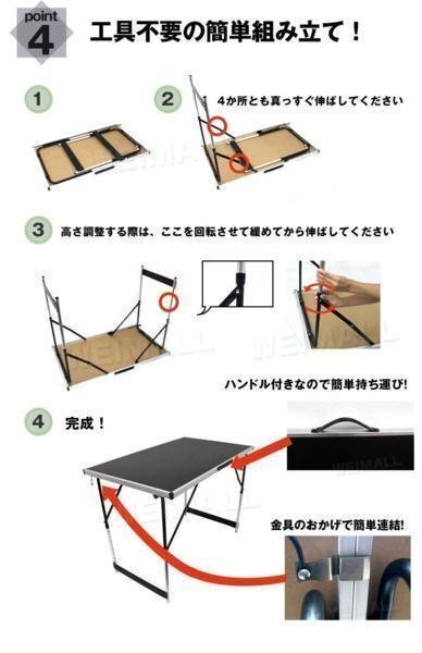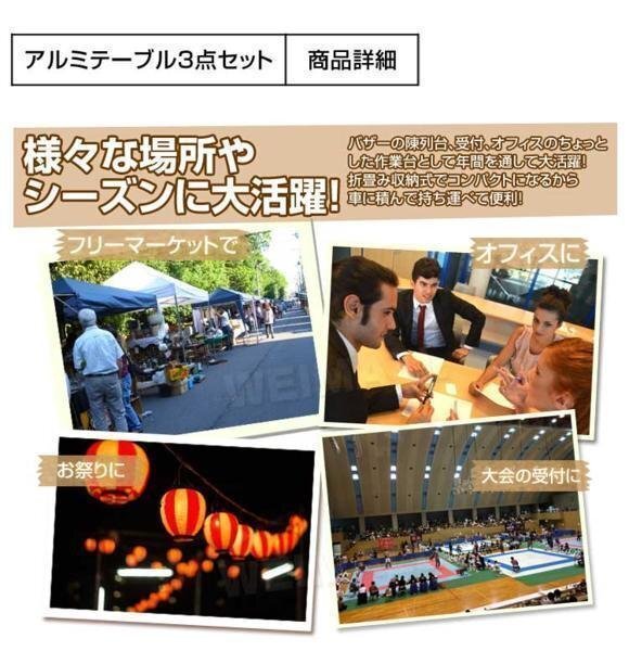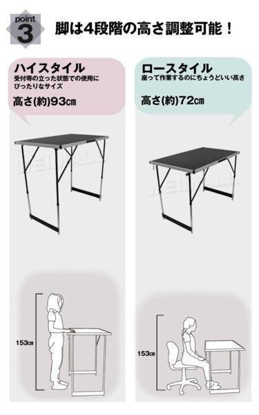 | ご家庭での宴会やイベント、オフィスの作業台として使えるテーブルです。 なんと3台セットです♪ 1台で使うも良し、複数台組み合わせて使うも良し。 あらゆるシーンで大活躍するテーブルです。 天板に水や汚れに強い防水加工! BBQの食材や調味料を置くテーブルとして使えます! ハンドル付きなので、持ち運び楽々♪ 【商品仕様】 ・カラー:ブラック ・商品外寸(約):幅1000×奥行600×高さ7250~9350mm(高さ4段階) ・商品重量(約):3.7kg ・耐荷重(約)30kg 【商品内容】 ・本体 ×3 【注意事項】 ・海外製品で、簡易梱包での輸入のため風防に擦れや多少の小キズなどがある場合がございますが、商品自体には問題ありませんのでご了承下さい。 ・商品は、モニターによって色合いが異なって見える場合があります。 ・仕様・デザインは改良のため予告なく変更することがあります。 |
