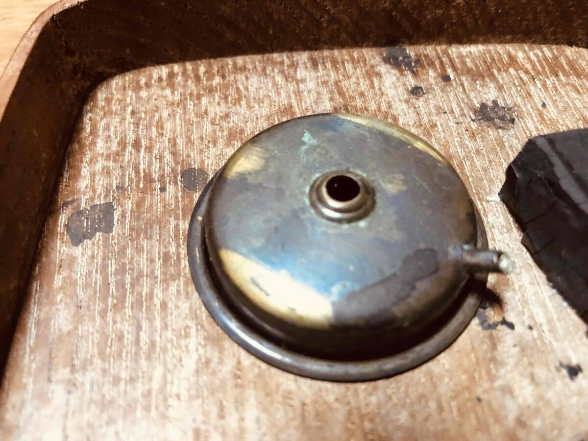 古いお品(古道具)です。木箱には経年によるスレ、汚れ、シミが見られます。