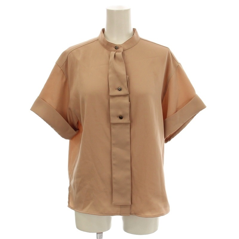 ユナイテッドトウキョウ UNITED TOKYO バンドカラー シャツ ブラウス 半袖 1 ピンクベージュ /☆G レディース