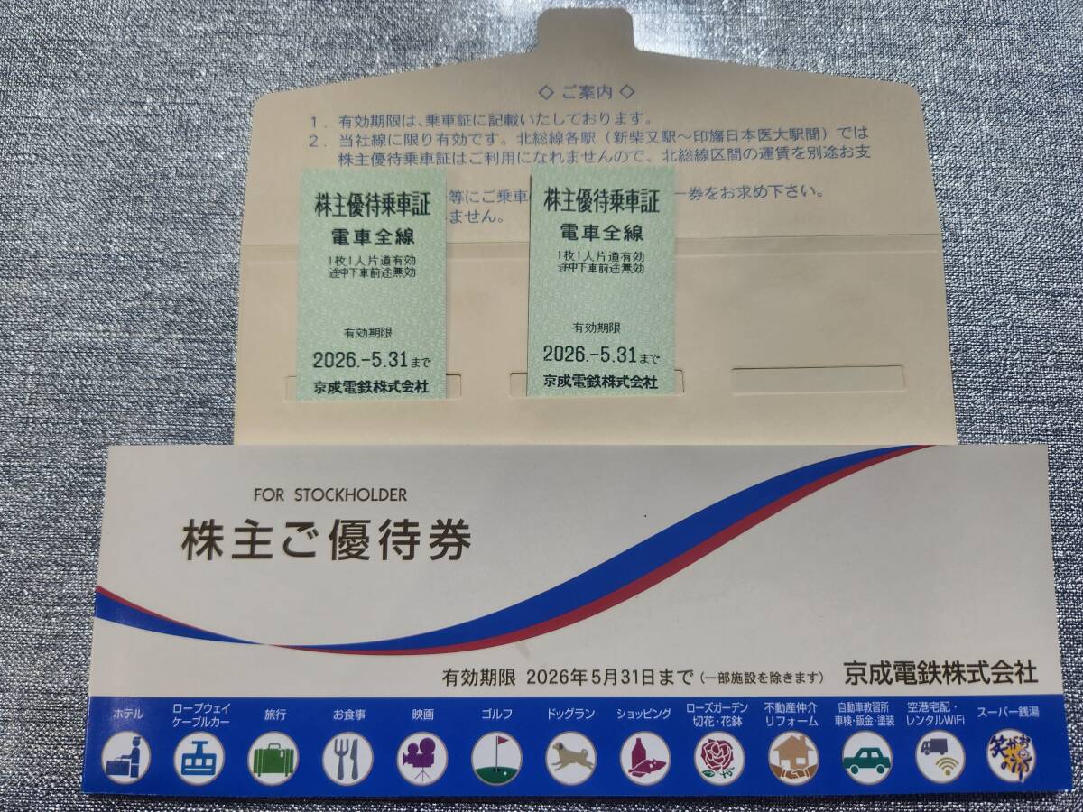 京成電鉄株主優待乗車券 2枚、京成電鉄株主優待券1冊 有効期限2026/05/31日まで