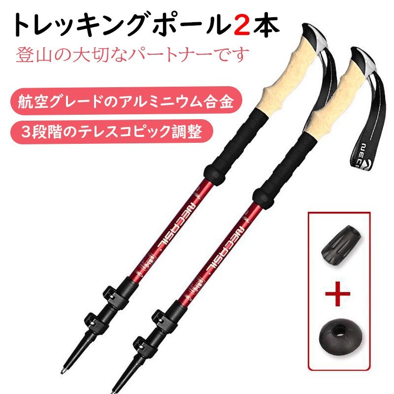 トレッキングポール 2本セット 登山杖 トレッキングステッキ 伸縮 調節可能 軽量 アウトドア ハイキング 登山用品 レッド hw839rd