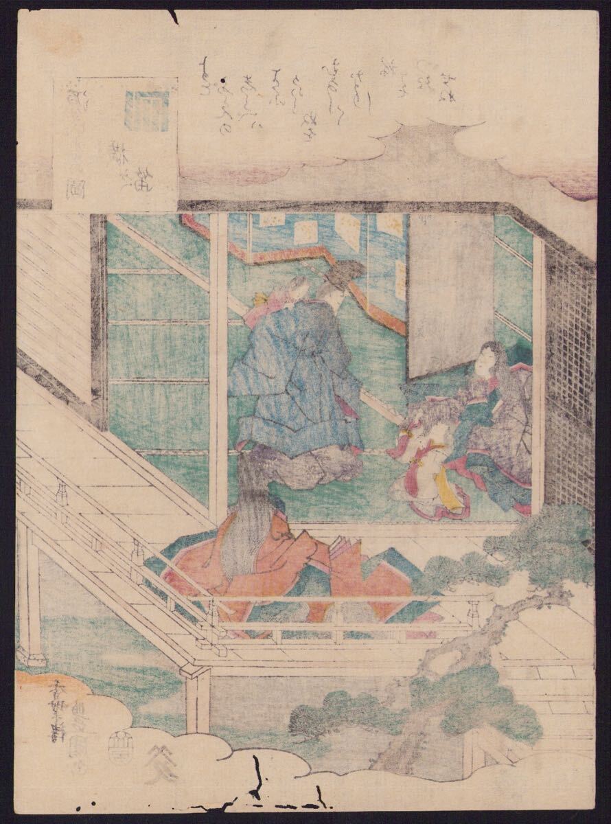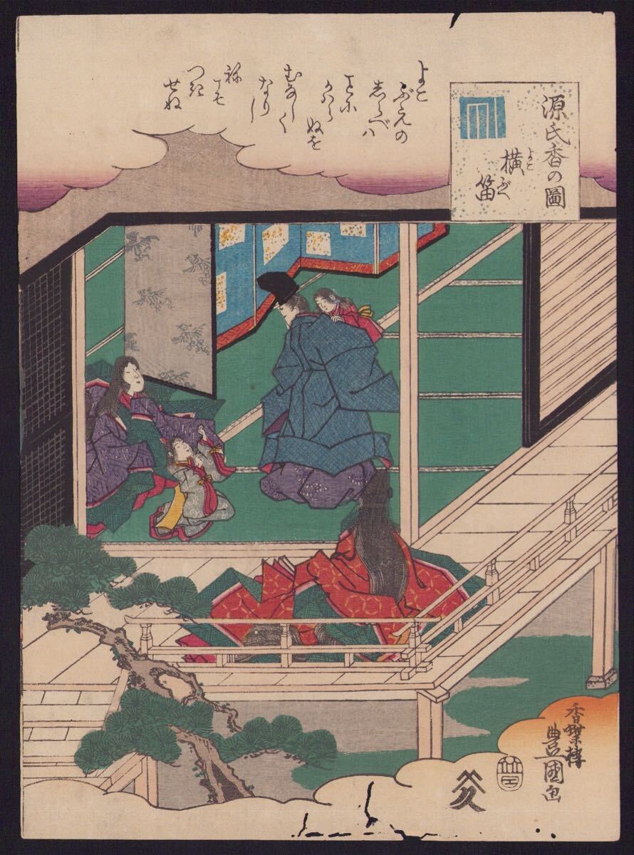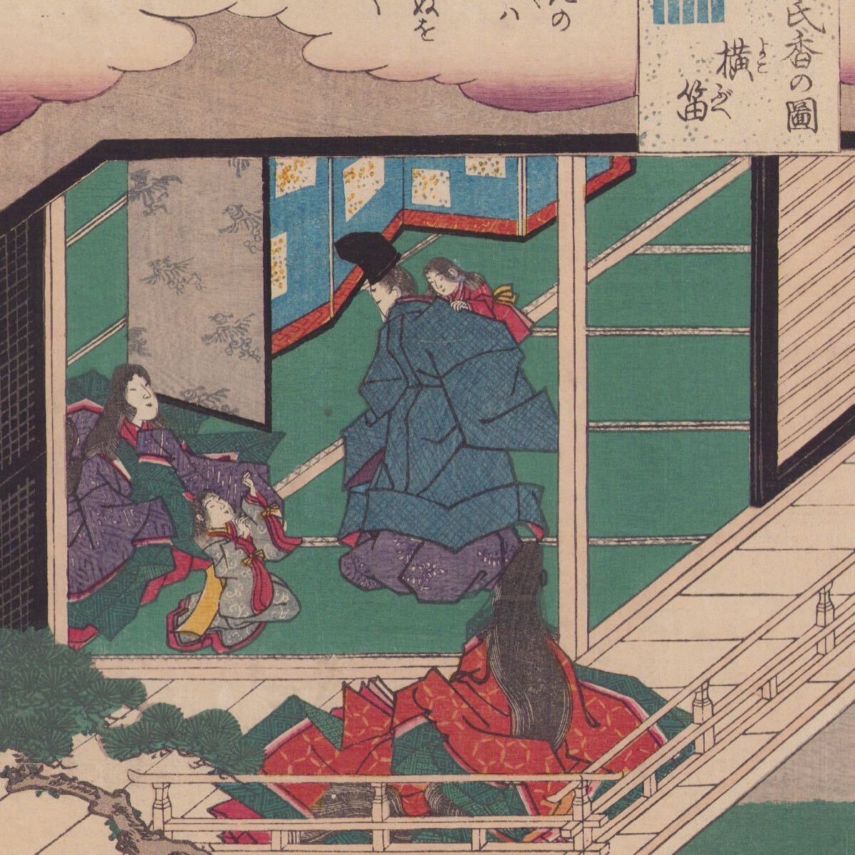 A12-10-2 横笛 源氏香の図 豊国三代 本物 浮世絵 木版画 中判 錦絵 源氏物語 Kunisada JapanesePrints Ukiyoe【真作】