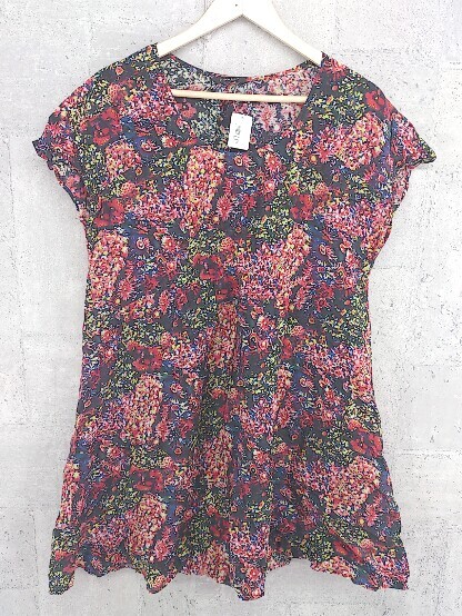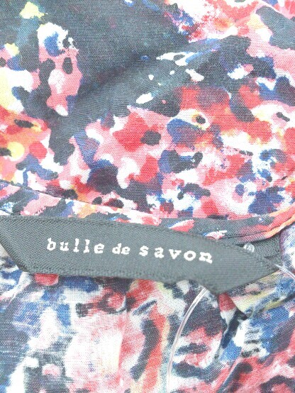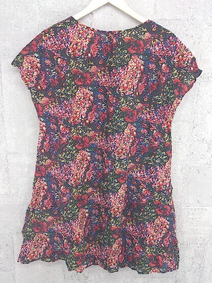 ◇ bulle de savon ビュルデサボン 花柄 フレンチスリーブ ミニ ワンピース サイズFREE ブラック レッド マルチ レディース