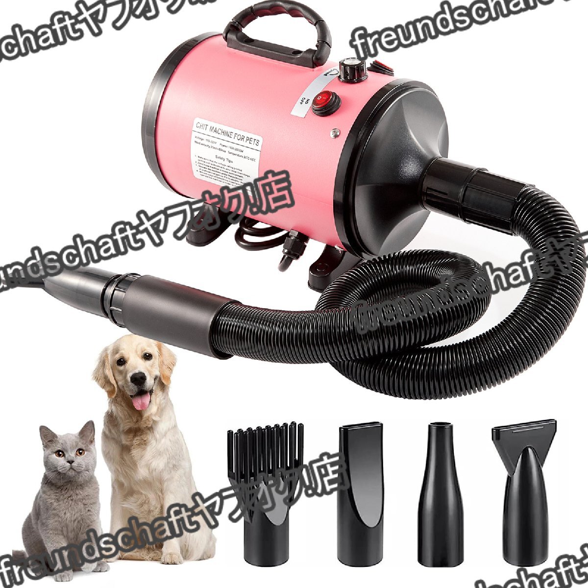 ペットドライヤー 犬用ドライヤー 猫 犬 ドライヤー 大風量 犬用乾燥機 無段階風速制御 -℃温度可調整 4種ノズル付き ピンク zchw0282.1