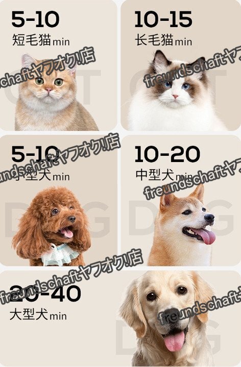 【強風型・快速乾燥】優良品質のブラシモーターを採用し、無段階風速制御で、最大風速は- /に達します。加熱の電力は、ペット快速に乾燥し、または定型することができます。