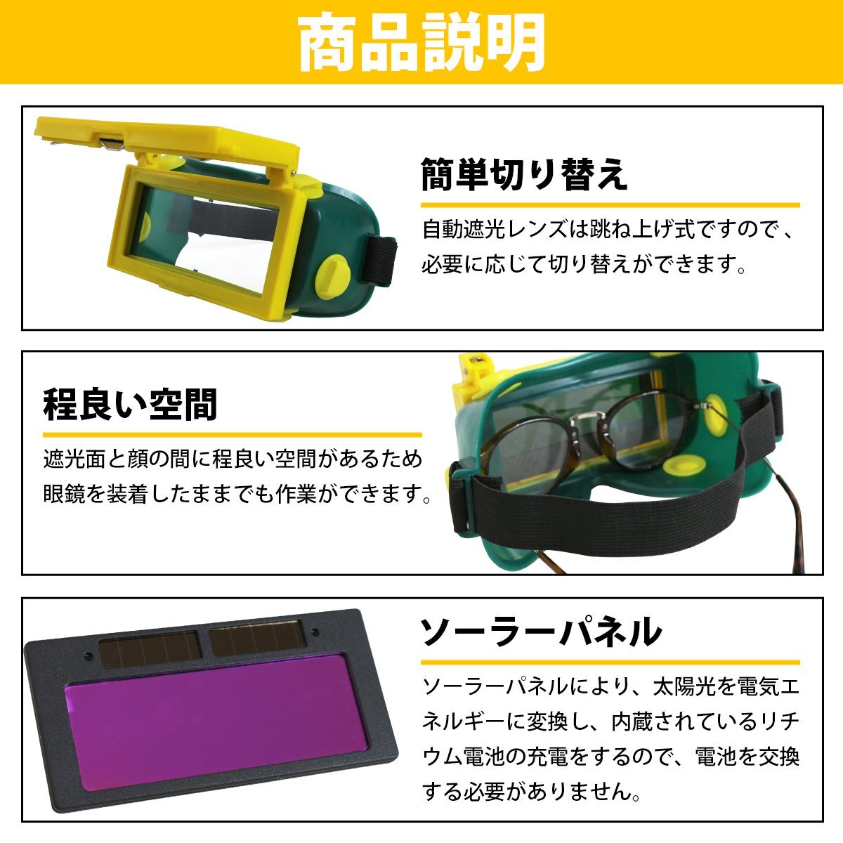 自動遮光 溶接用 ゴーグル メガネ ソーラー充電 太陽光 シールド 感光式 アーク 溶接 光 目 眼鏡 保護 遮光面 DIY スズキッド