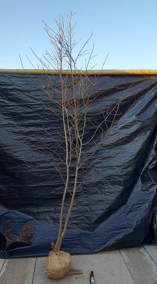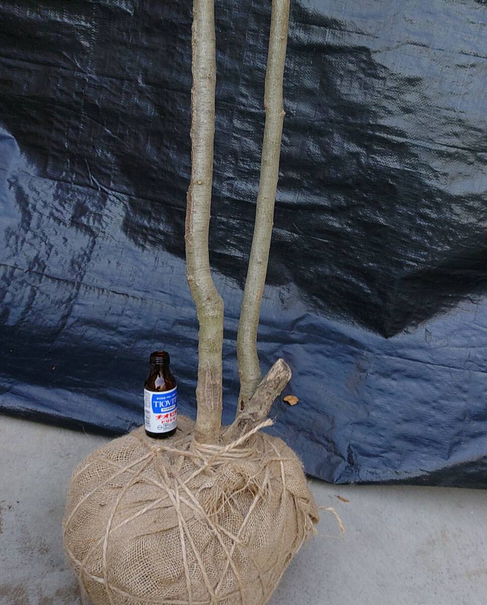高さ(鉢底)から約300㎝、横幅(最も広い所)約140㎝、根鉢(直径)約38㎝、根鉢(高さ)約19㎝になります。