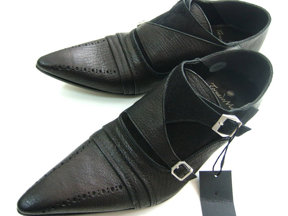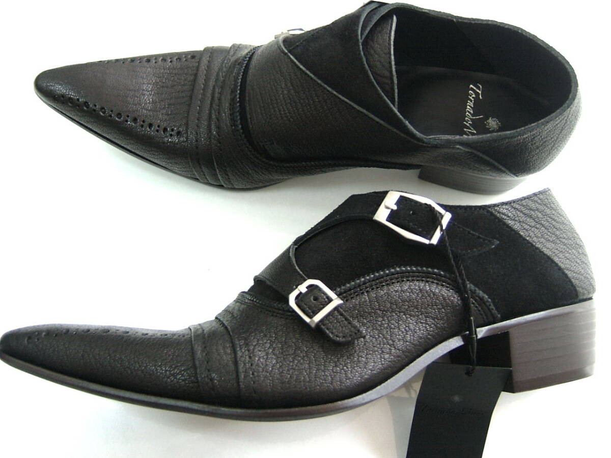 トルネードマート シューズ L レザー 本革 黒 ポインテッド ダブルモンク 新品 7104