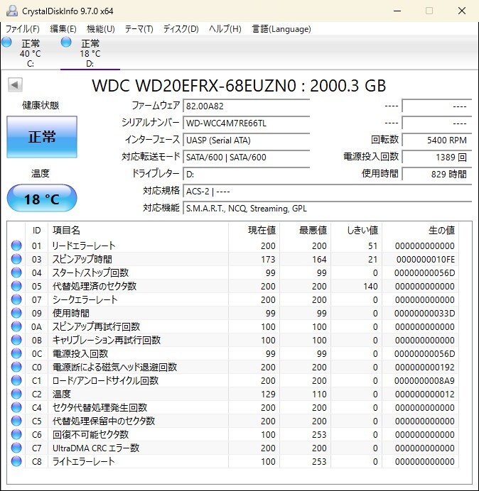 Western Digital WD red WD20EFRX/WD20EFAX 2TB 6台です。HDD ハードディスク