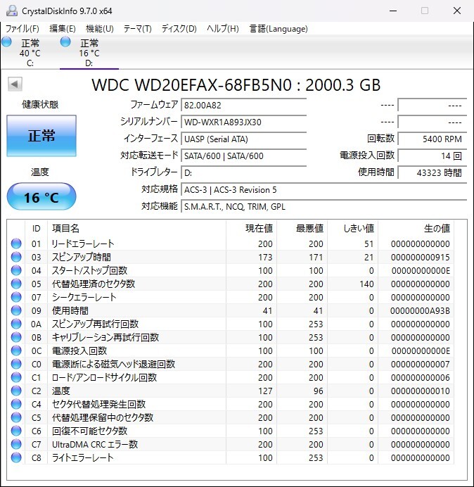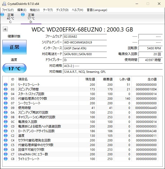 Western Digital WD red WD20EFRX/WD20EFAX 2TB 6台 健康状態 正常 HDD ハードディスク 12-11-6A