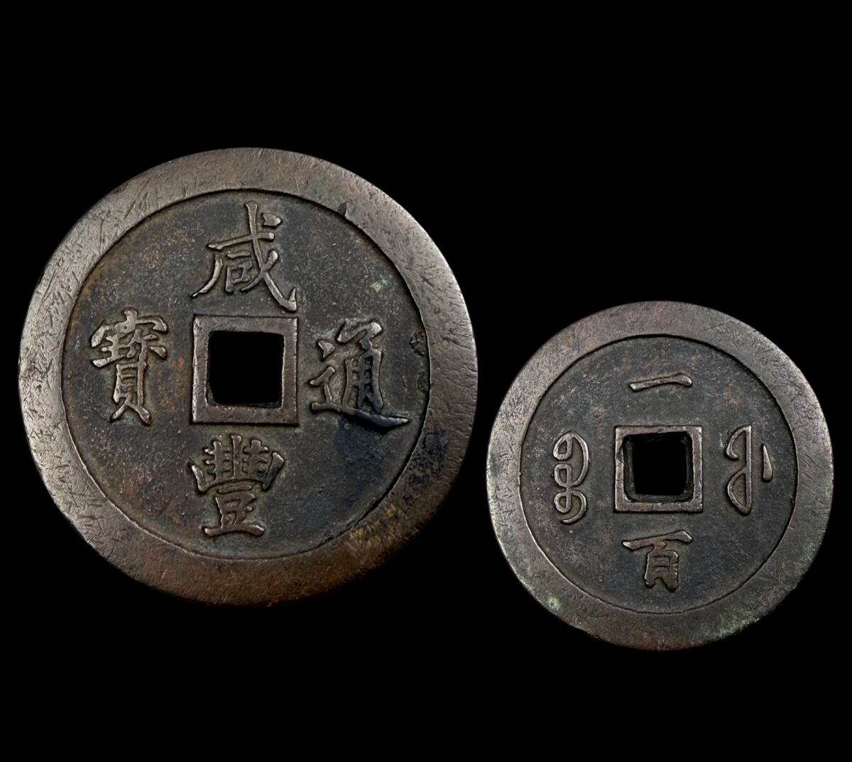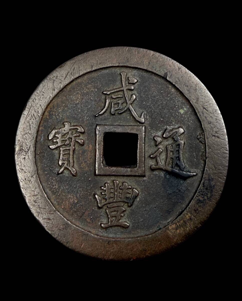 【偲】中国古銭 咸豊通宝 咸豊通寶 一百 古銭 穴銭 母銭  重約189g r-1180