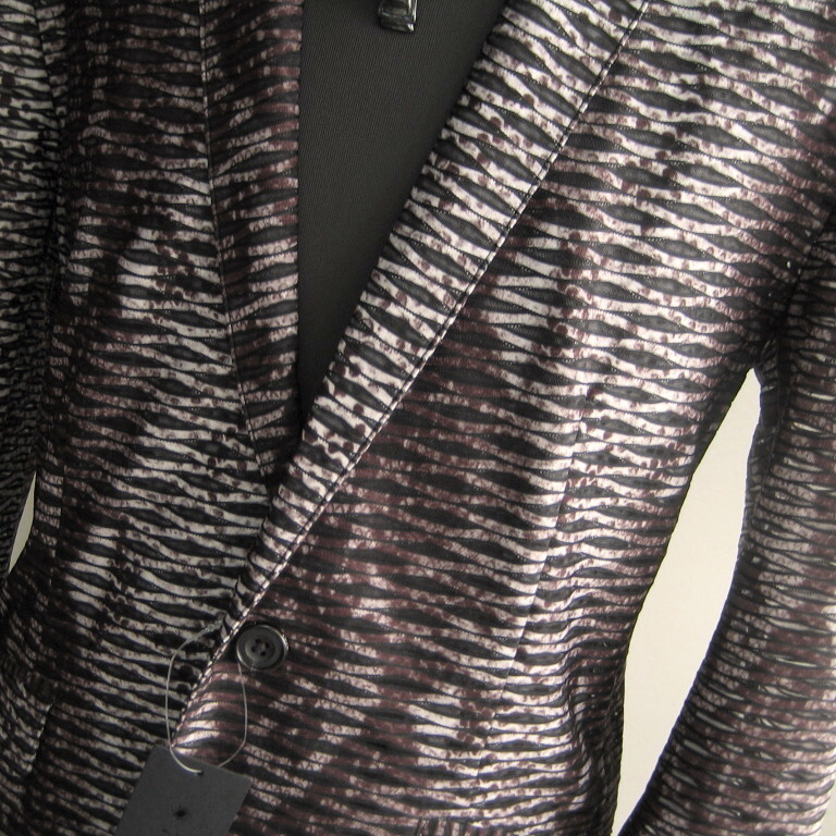 ■薄手のジャージー素材でありながら、素材の凹凸感と色相、それにかぶるプリント柄、それらが混ざり奥行き感のある素材となっています