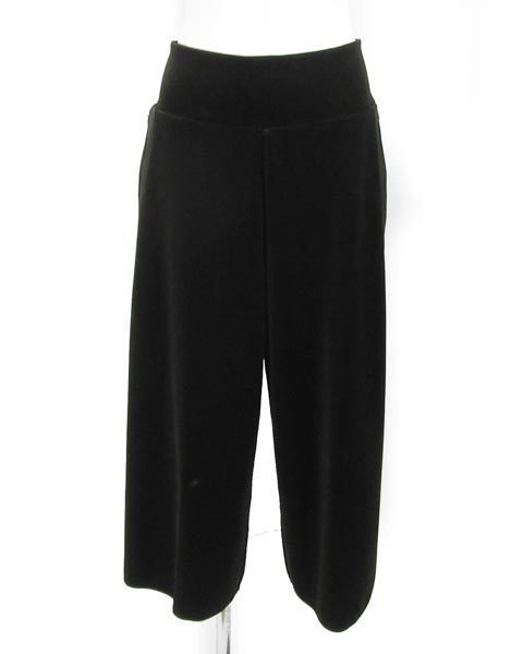 | 半端丈のベロアのパンツ。光沢があり、華やかさがあります。カジュアルにも、ジャケットをプラスしたきちんと感のあるスタイルも楽しめます。フォクシーカラーとあわせやすいこげ茶です。 |