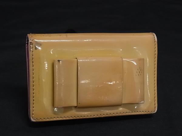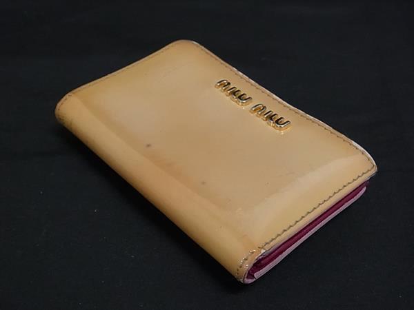 miumiu ミュウミュウ パテントレザー リボン 名刺入れ カードケース カード入れ レディース ベージュ系 DL1459