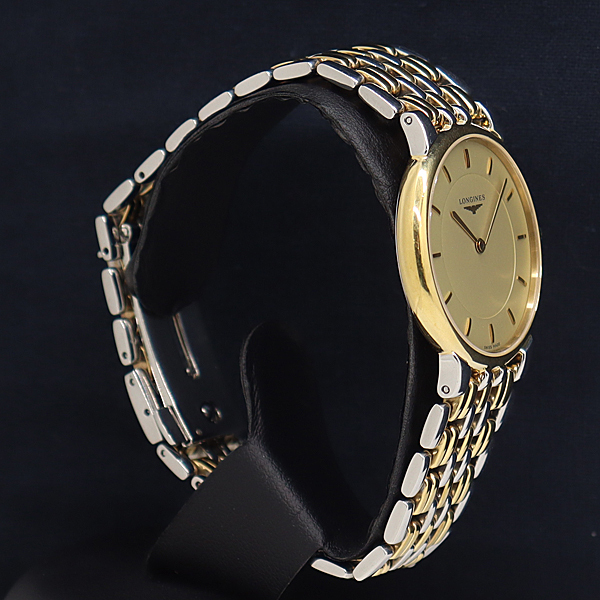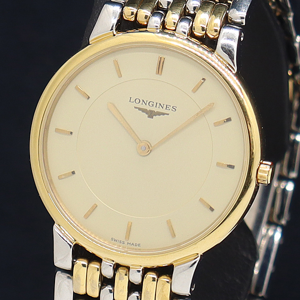 1円 稼働 良品 ロンジン QZ グランドクラシック L5.636.3 ベージュ文字盤 メンズ腕時計 4609000 12TLT IKE