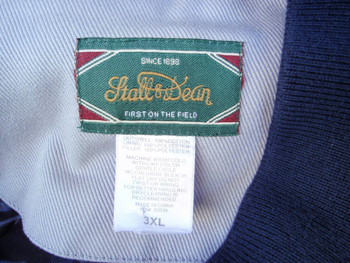 中古品ですので少し使用感や第5ボタン付近と左袖に汚れがありますが、上手に使っていたので目立った酷い汚れや傷は無く十分使えると思います。ストールアンドディーンの中綿仕様なブルゾンジャケット/スタジアムジャンパーになるかと思います。サイズは3XL表記で、実寸では平置きで肩幅63センチ、身幅75センチ、着丈79センチ、袖丈69センチ位になります。正規品。