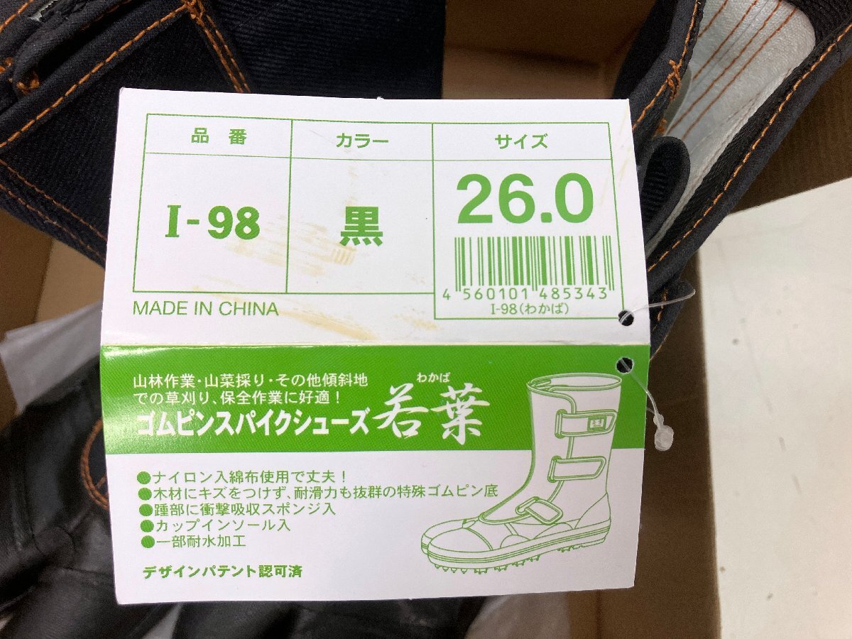新品未使用品になります。 写真のもので全てになります。 【用途】 森林作業・草刈り・山菜採り等、特に傾斜地での作業。 【特徴】 柔軟なゴムピンが土面の凸凹をしっかりとキャッチするので、足場の不安定な傾斜地作業等に効果的です。 着脱簡便の大開放マジックバンド式です。 履き口ズボン止めによって、靴からズボンが抜けにくいです。 ナイロン入り綿布使用と重要部分ゴム補強で丈夫です。 衝撃吸収材入りで、くるぶし部分にはパットが付いています。 【仕様】 ●サイズ:26.0cm。 ●カラー:黒。 ●タイプ:マジック調節・1型底。 ●靴底仕様:ゴムスパイク底。 ●くるぶし下耐水加工。 ●履き口ズボン止め付き。 ●くるぶしパット付き。 ●衝撃吸収材入り。 【材質】 ●アッパー:合成繊維・合成樹脂・ゴム・金属。 ●ソール:ゴム・合成繊維。 ●当店出品商品におきまして、店舗での併売を行っているお品物がございます。 ご落札のタイミングによってはお品物のご用意が出来ない場合がございます。 店舗での販売が優先となりますので、あらかじめご了承ください。 ●簡易的な清掃はしておりますが、取り切れない汚れ・社名跡がある場合がございます。 ●リユース品ですので細かな傷・打痕・サビ・塗装剥がれ・変色等があります。 ●神経質な方・完璧なものをお求めの方は入札をお控えください。 ●弊社ではお値引き価格交渉等はご対応を行っておりません。 ●即決価格が設定されてい商品はオークション形式のみでの販売となります。 ●外国籍の方と以前のお取り引きでトラブルが発生した為、日本語が細かく理解出来ない方は入札をご遠慮下さい。 ●Please refrain from bidding if you are unable to understand Japanese in detail, as we had trouble with a previous transaction with a foreign national. | ||
