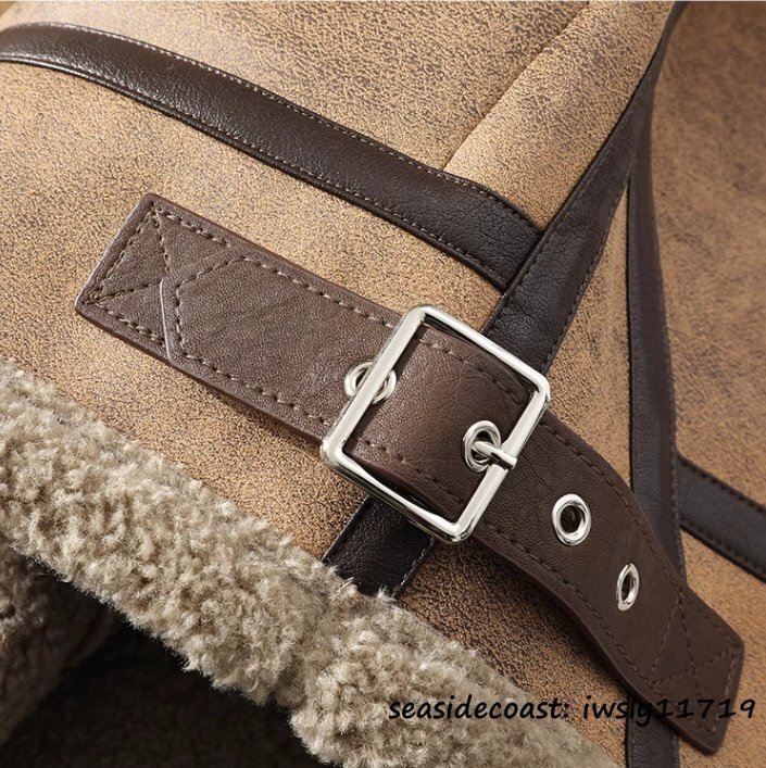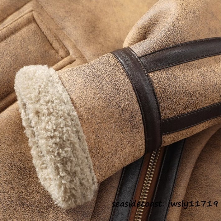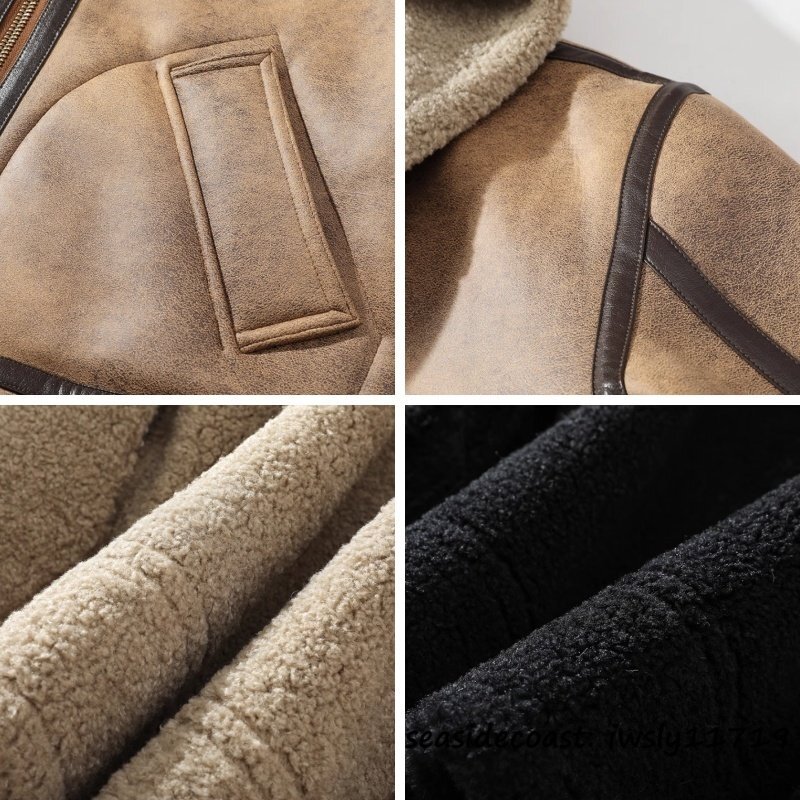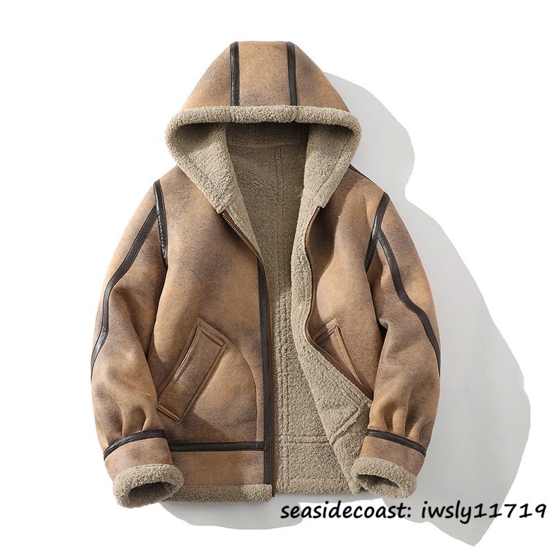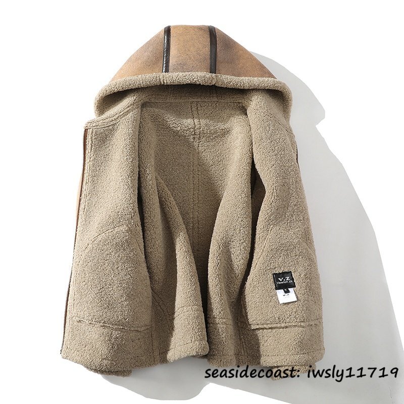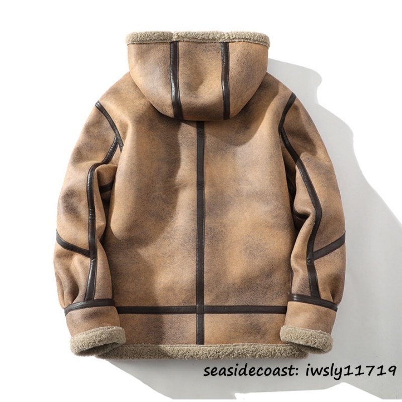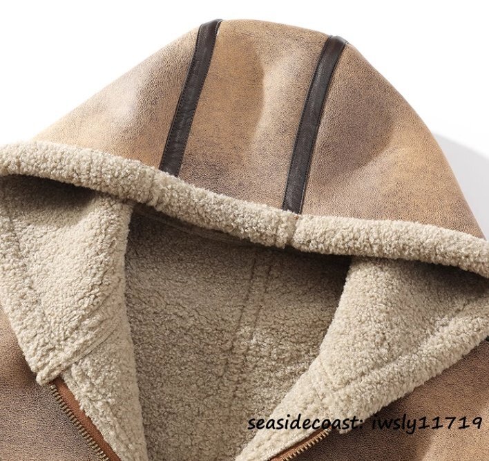 最上級*ライダース フード付き ムートンコート メンズ レザージャケット ブルゾン ジャンバー 防寒 厚手 フライトジャケット ブラウン 5XL