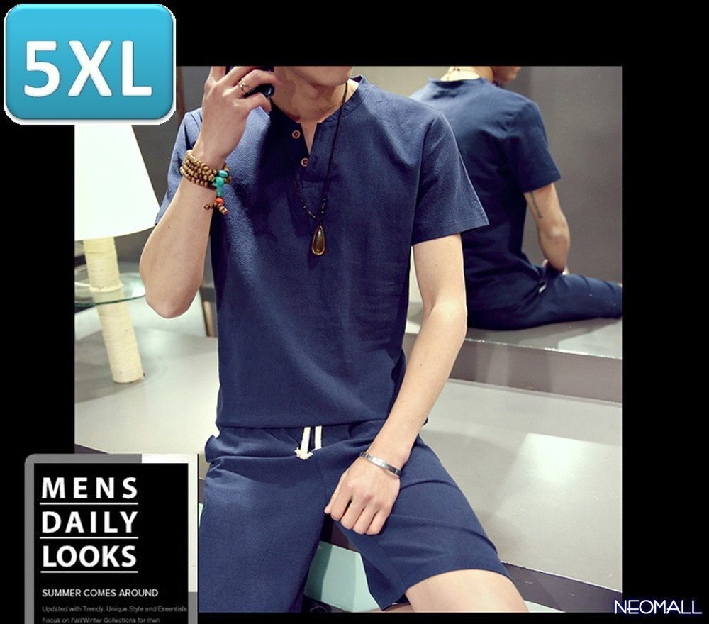 人気商品☆【276】 新品 サマーコットン ヘンリーネック セットアップ ネイビー 5XLサイズ 春 夏 部屋着 ルームウエア