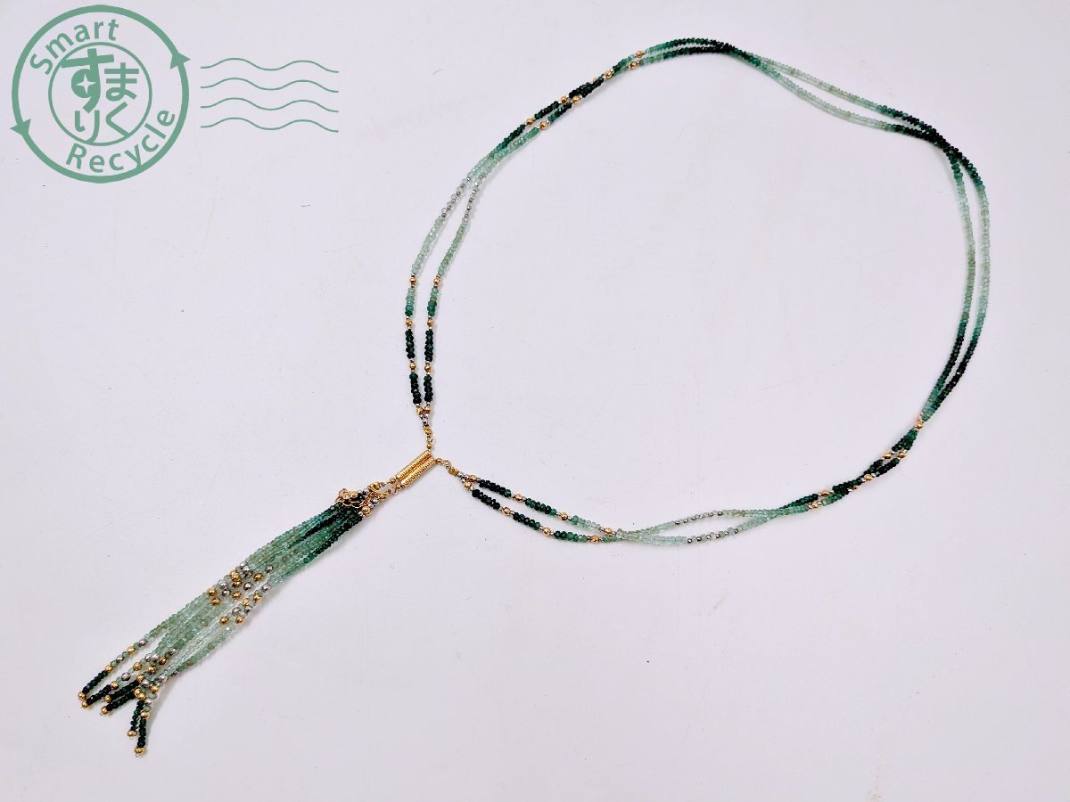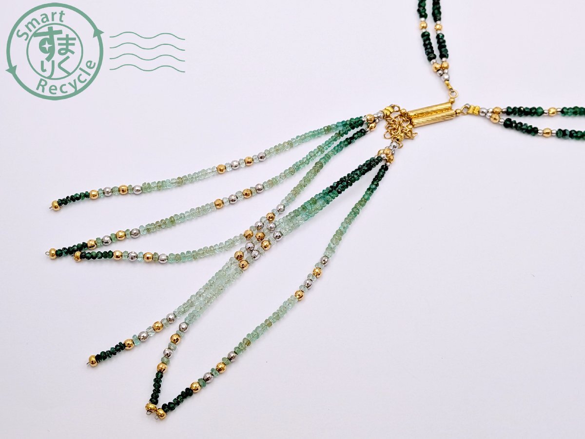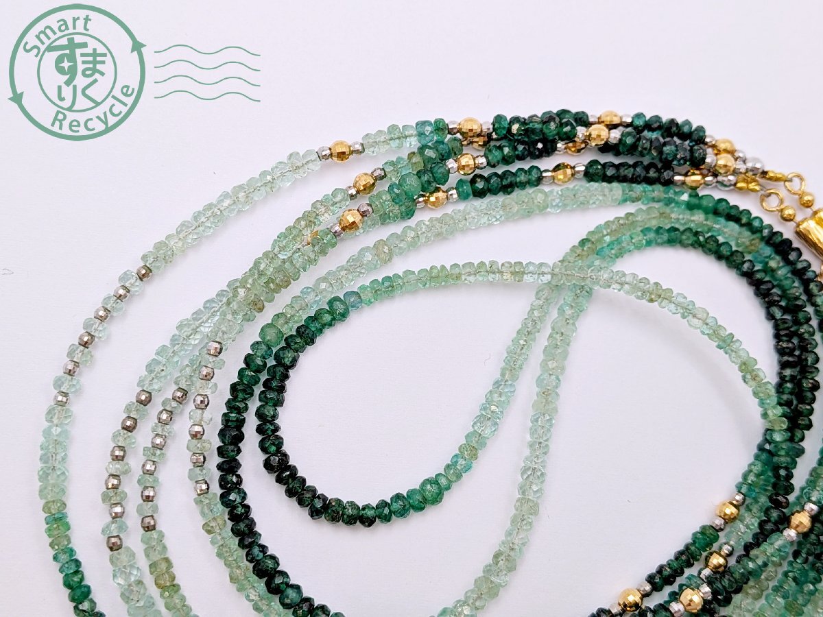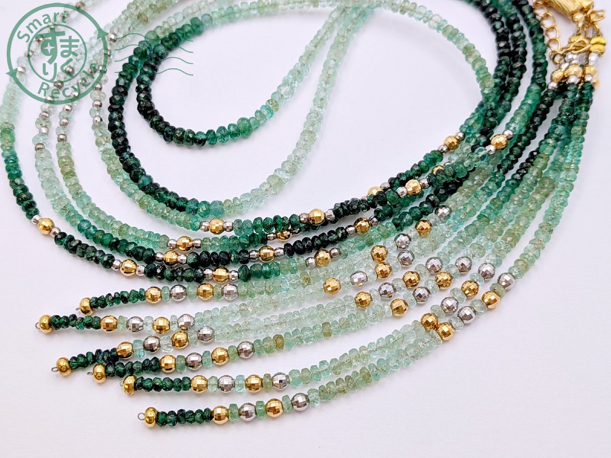 ★ 1円~! エメラルド 色石 緑石 ゴールドカラー シルバーカラー 2連 ネックレス 総重量約26.8g アクセサリー ジュエリー | |||
