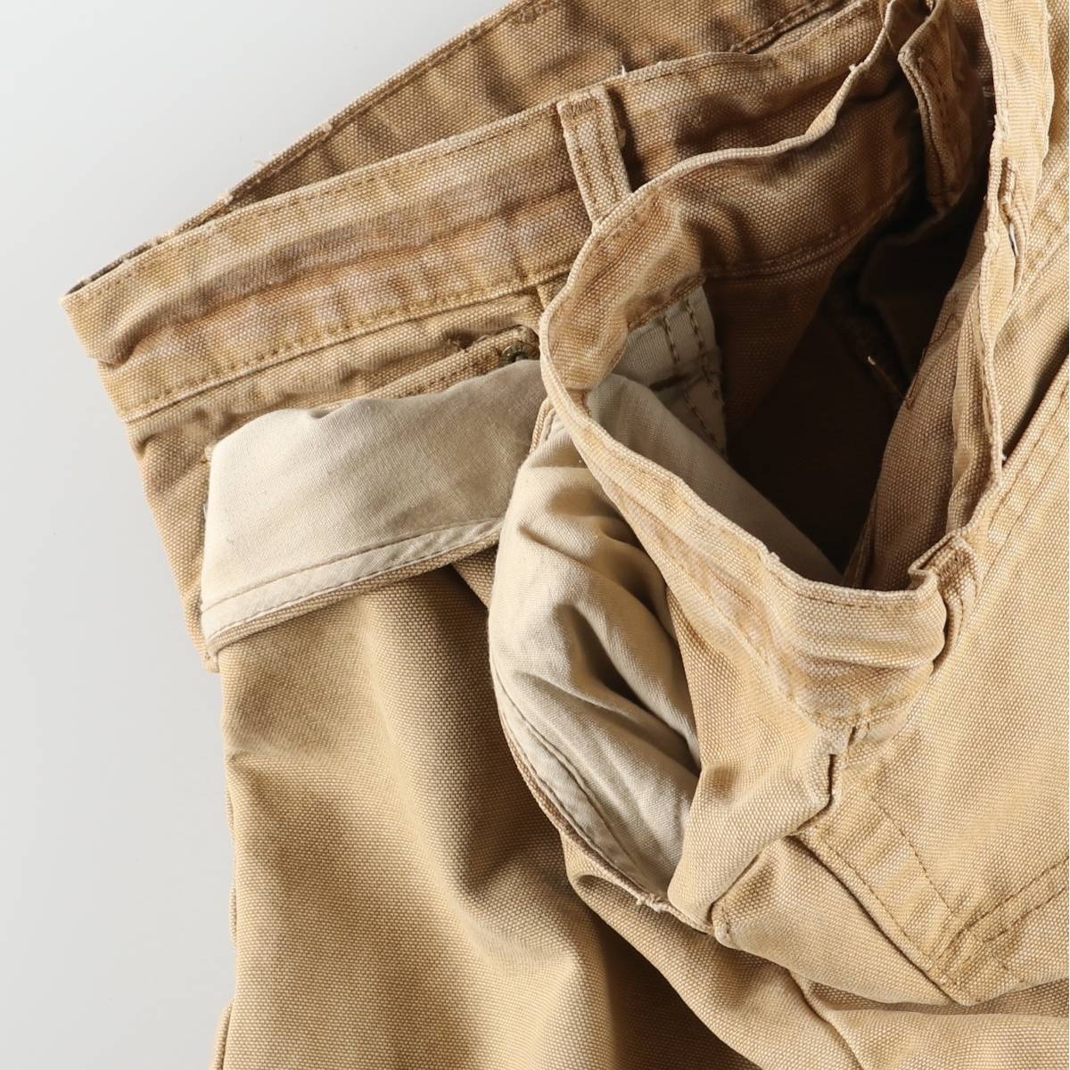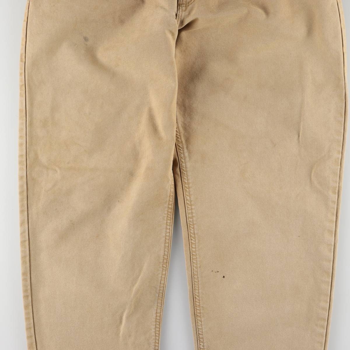 | 着用感: メンズw37 表記サイズ: 不明 ウエスト: 96cm 股上: 28cm 股下: 72cm もも周り: 73cm 裾周り: 43cm ![]() | ![]() ランク:C USEDワークアイテムですので使用感などございますが、まだまだご愛用していただけます。 古着という事をご理解の上ご注文よろしくお願いします。 【状態追記】 ●前、下腹部・左右腿・左右膝・左右ポケット内・左右ポケット口裏に汚れ ●後、右ヒップ・右腿・左ふくらはぎ・左裾裏に汚れ ●後、左右裾に裂け ●後、左ヒップにリペア跡(あて布あり) |