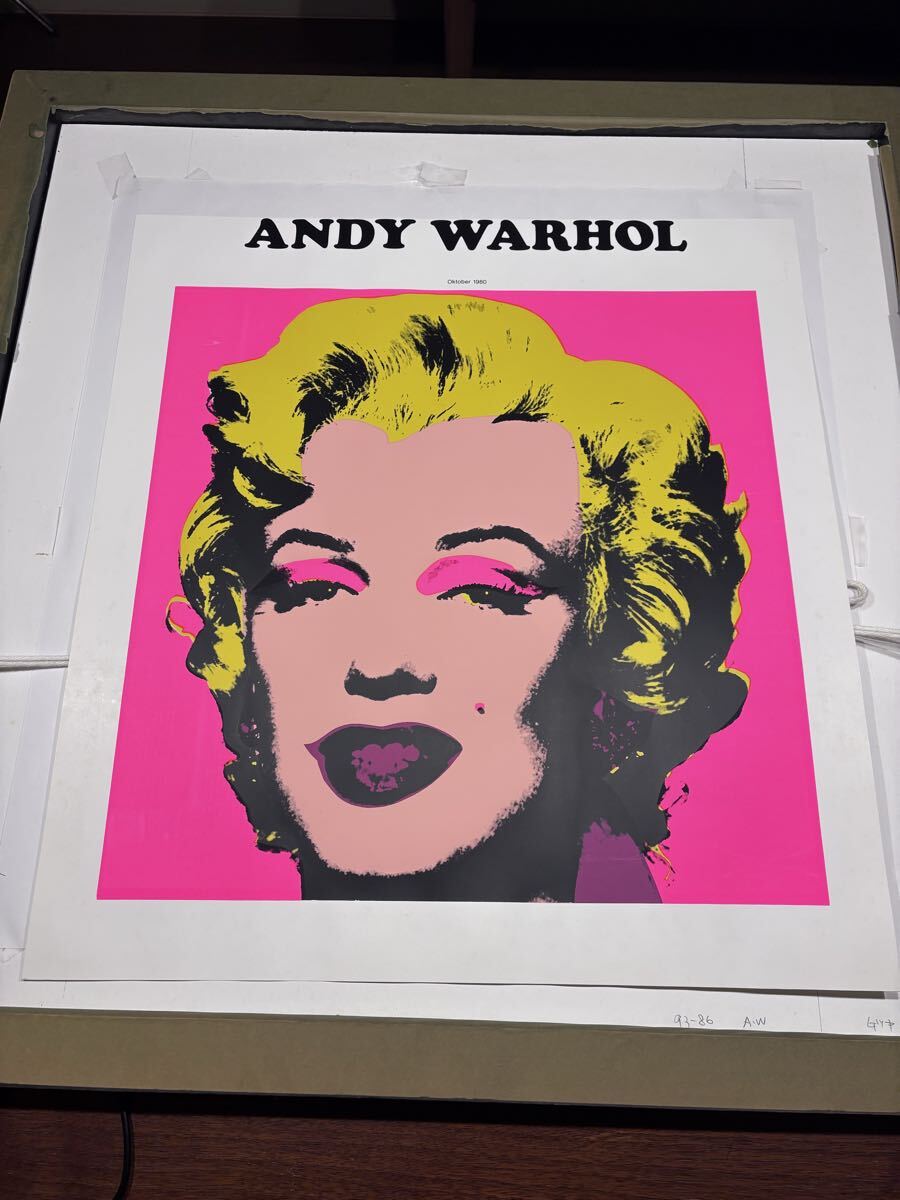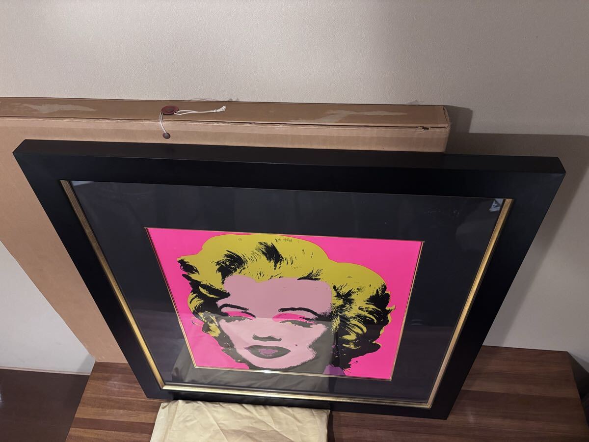 アンディ・ウォーホールのシルクスクリーン「マリリン」です。 1980年にベルリンで行われた個展のポスターです。発色も良くとても良い状態です。回りをカットし額装された状態でギャラリーで販売された物のようです。額裏の封を剥がし内部を確認しています。贋作の場合には鑑定書同封で返品を受け付けます。 写真でご確認の上ノークレーム、ノーリターンをご理解いただける方のみ入札下さい。 全国送料着払でお送りします。 額サイズ 幅71cm x 高さ71cm |
