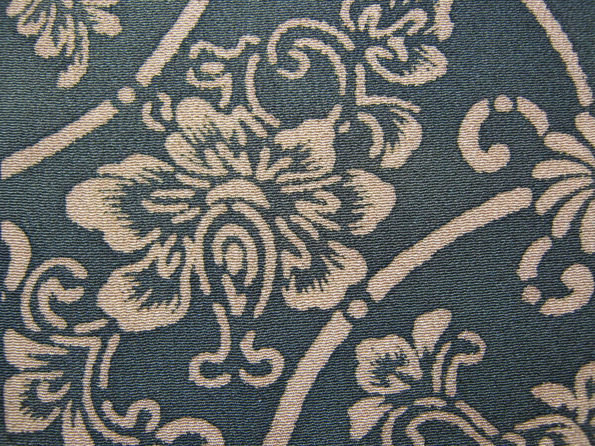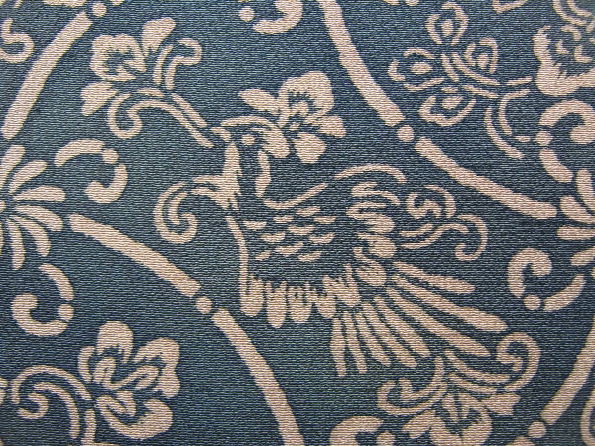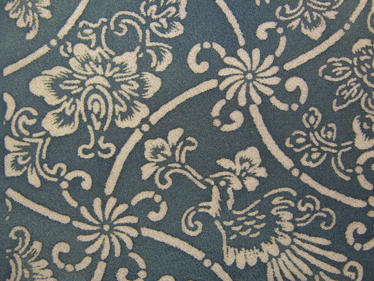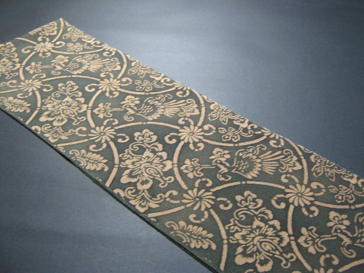 古布 半衿【正絹縮緬/型染 飾り分銅菱 花鳥更紗 花喰い鳥 唐花 辛子 渋抹茶地】はぎれ