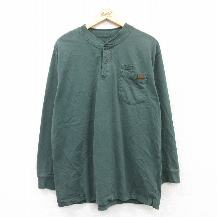 【商品名】 XL★古着 ラングラー 長袖 Tシャツ メンズ 胸ポケット付き 大きいサイズ ヘンリーネック 緑