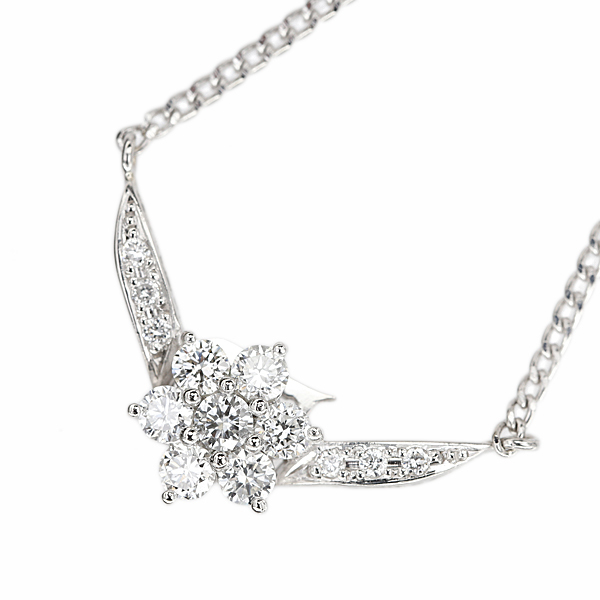 アコヤ真珠 ネックレス ダイヤモンド Pt900 Pt850 マルチway 花 フラワー 植物 ボタニカル 送料無料 中古 宝正 901405