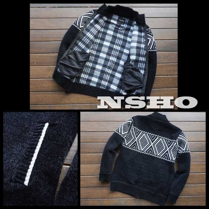 3598【M~2XLサイズ指定可】 プレミアム メンズ 裏起毛 民族ネイティブ ジャケット アウター 春秋冬 カーディガン セーター ジップアップ ブラック