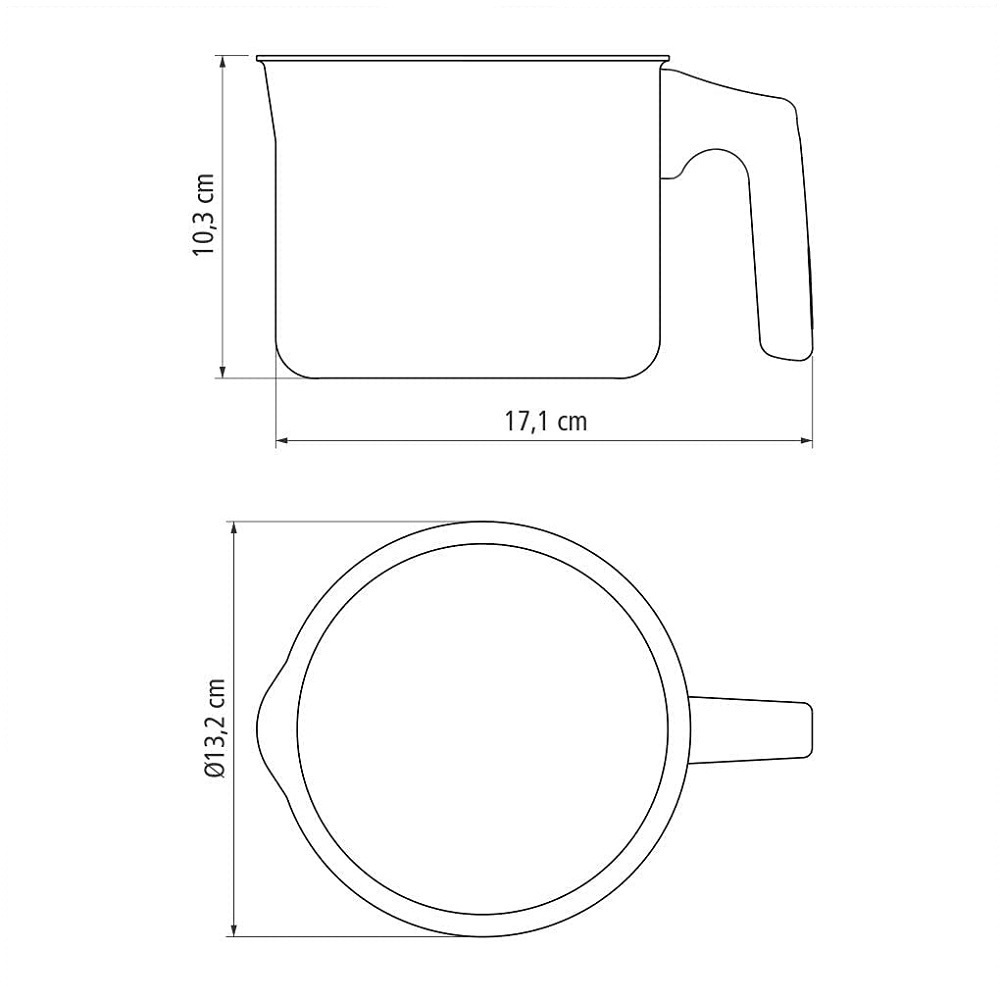 置いた際には安定しており、通常のミルクパンに比べて柄が短く省スペース。注ぎ口もついていて液漏れしません☆