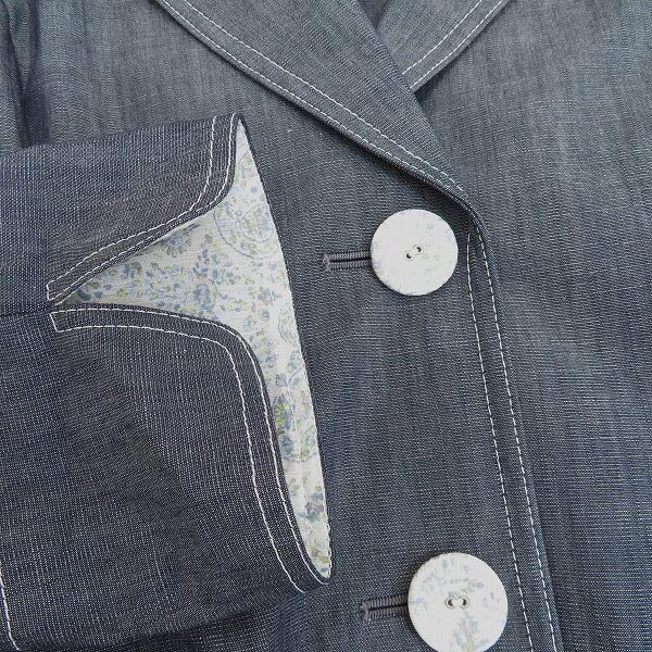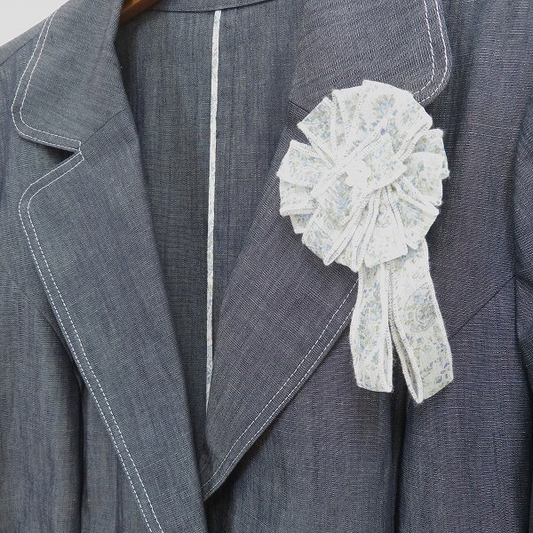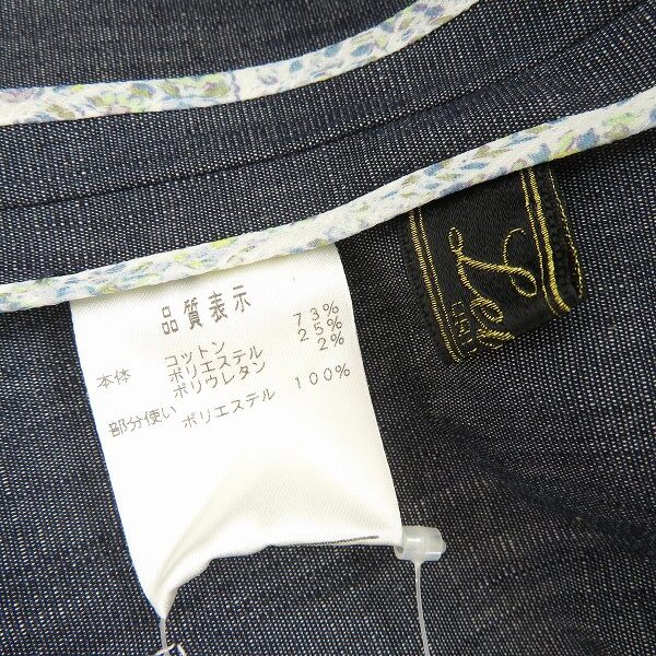 #a レリアン Leilian ジャケット 15+ 紺系 デニム調 花柄 コサージュ付き 綿 コットン ストレッチ 15号 大きいサイズ 日本製 873508 k01