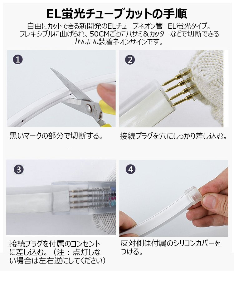 ※カットをして・屋外で使用の場合は接続(コネクタ)部分を防水加工してからご使用下さい。