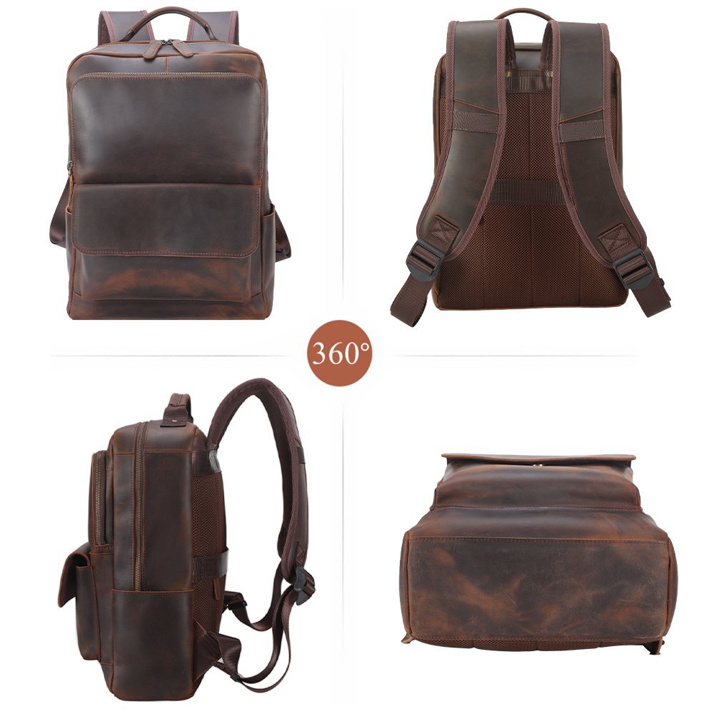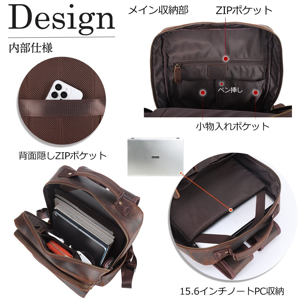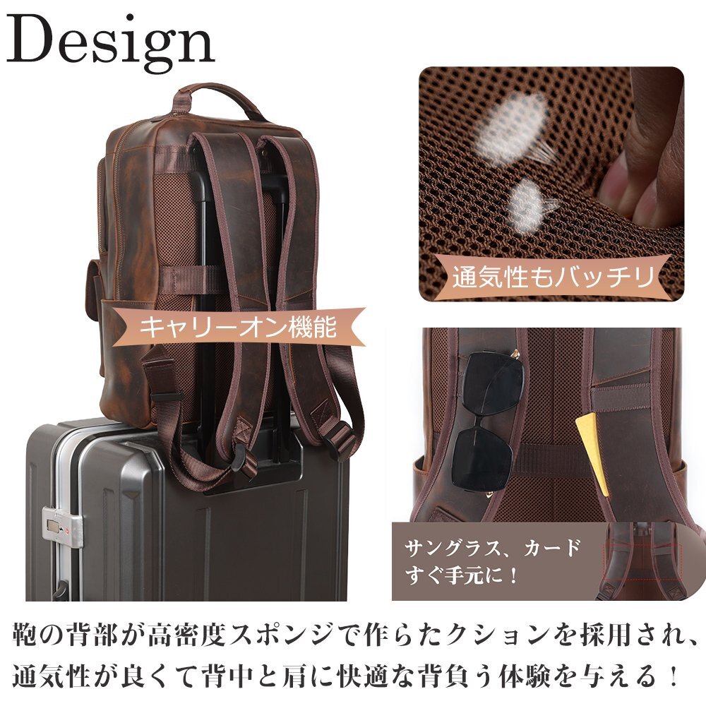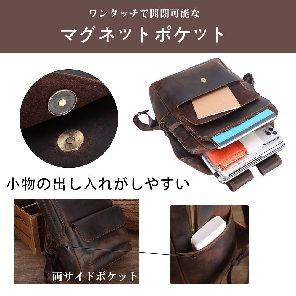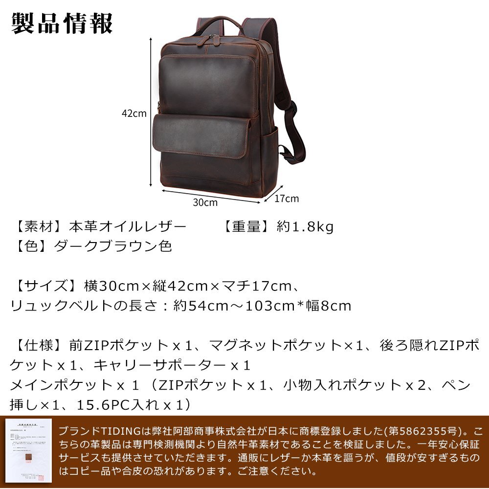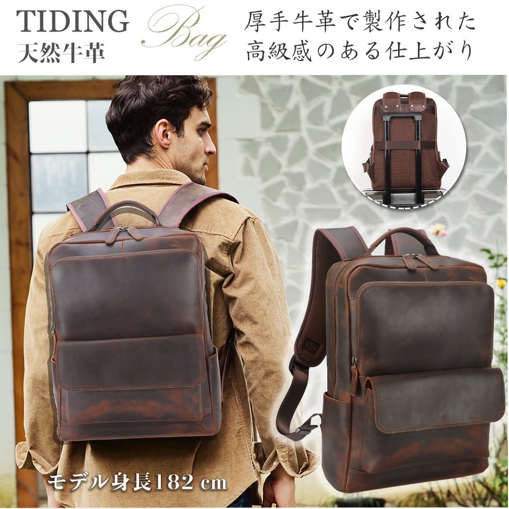 TIDING リュック 本革 シンプル メンズ バックパック リュックサック 大容量 2WAY ビンテージ レザーバッグ 20L 15.6PC ブラウン