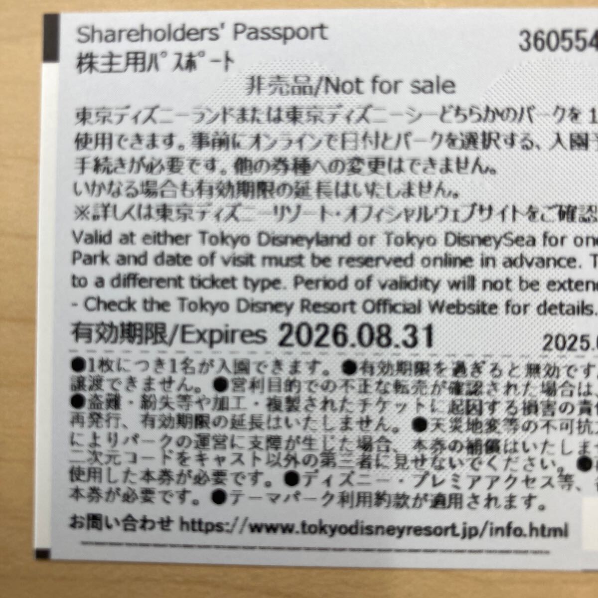 東京ディズニーリゾート 株主優待チケット 1枚