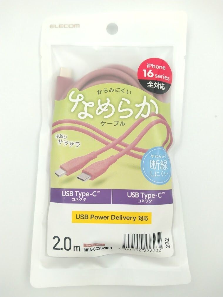 エレコム Type-C ケーブル MPA-CCSS20BR シリコン  やわらか  【iPhone15 対応検証済】  USB-C & USB-C 2m 60W USB PD対応