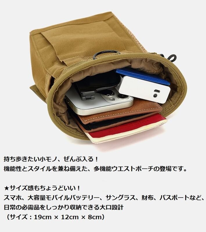 ウエストポーチ ポーチ メンズ レディース 収納力抜群 アウトドア 散歩 旅行 キャンプ サバゲー 7987000 カーキ 新品 1円 スタート